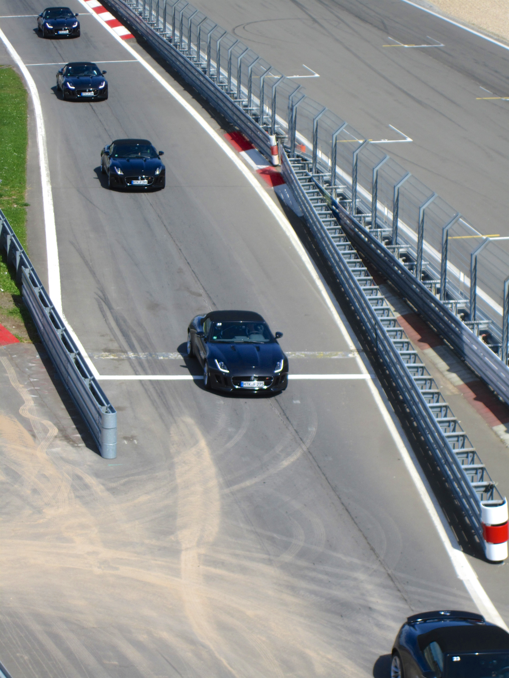 First we got the opportunity to drive ourselves in a “more or less” controlled matter… I entered the F-Type S with 380 horsepower and once everybody was seated the courier gave the start signal and headed off. He was following the best possible driving route on the circuit and all we had to do was try to mimic him and follow the traffic cones.