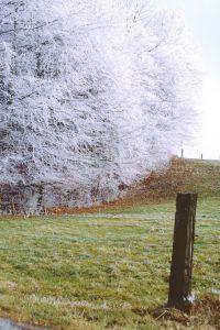 With temperatures that low the trees were covered in frost. The combination with the blue sky was simply stunning.