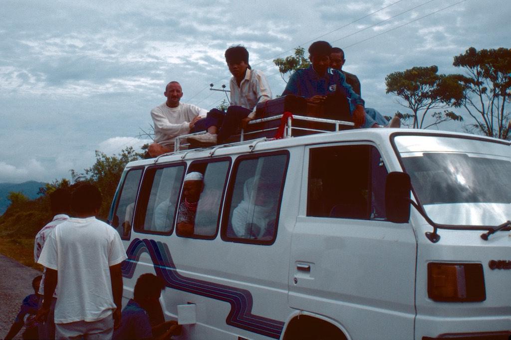 Once back in Banda Aceh it was time to make plans on how to continue the trip. One of the guests I met in Gapang Beach told me he wanted to make a bus journey off the beaten track to Berastagi. We checked the possibilities in our guidebooks and set off. The first day we traveled over the Trans Sumatran highway to Bireuen where we had to change the bus. Now it became interesting. We drove through a hilly area with lots of forest between which we could see rice fields as patches in the landscape.