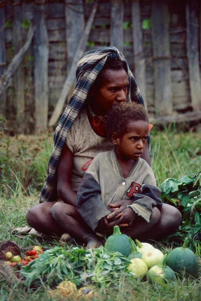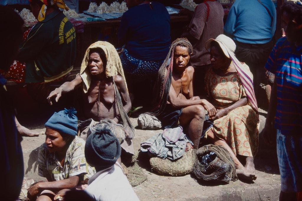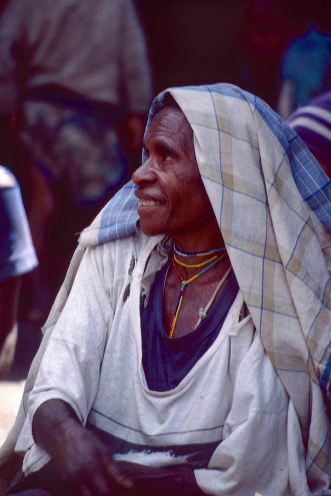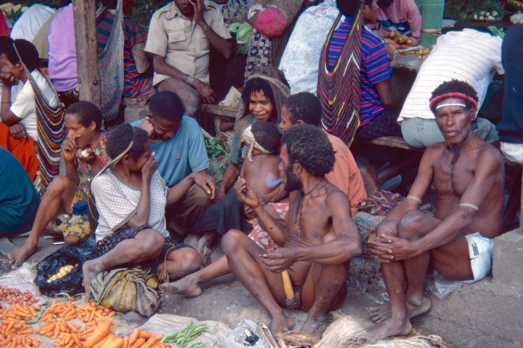 In Jayapura I had to arrange a “surat jalan”, a special travelpermit, before I could book the final flight to Wamena in the Baliem valley… During the long waiting period I met Ronald and Eus, 2 Dutch guys, we got along very well so after we finally arrived in Wamena we decided to do a trek together. On the airport we were contacted by a guide who offered his services. He seemed to be reliable and competent so we agreed to do a 6 day trek through the northern part of the valley with him and his helpers. After everything was arranged Ebanus went out doing some shopping while we went to the market sightseeing. Over there all my senses went nuts…