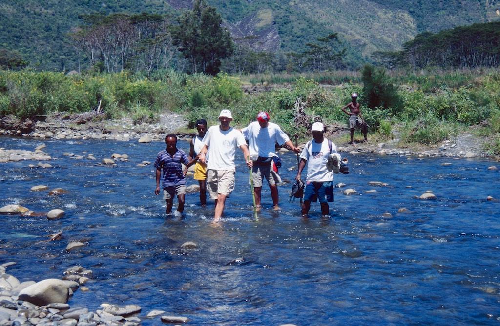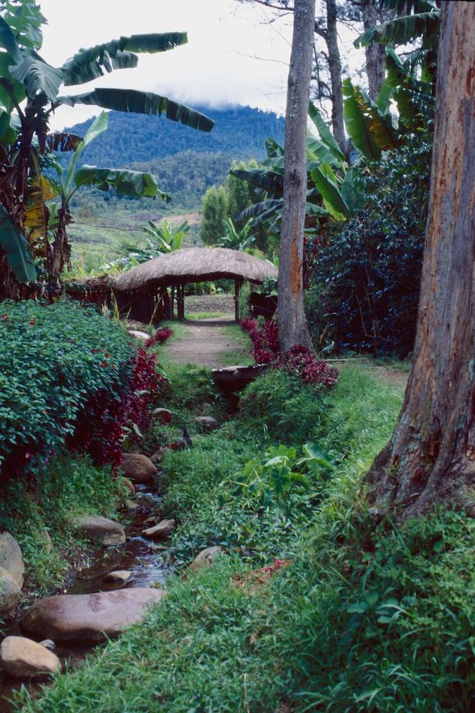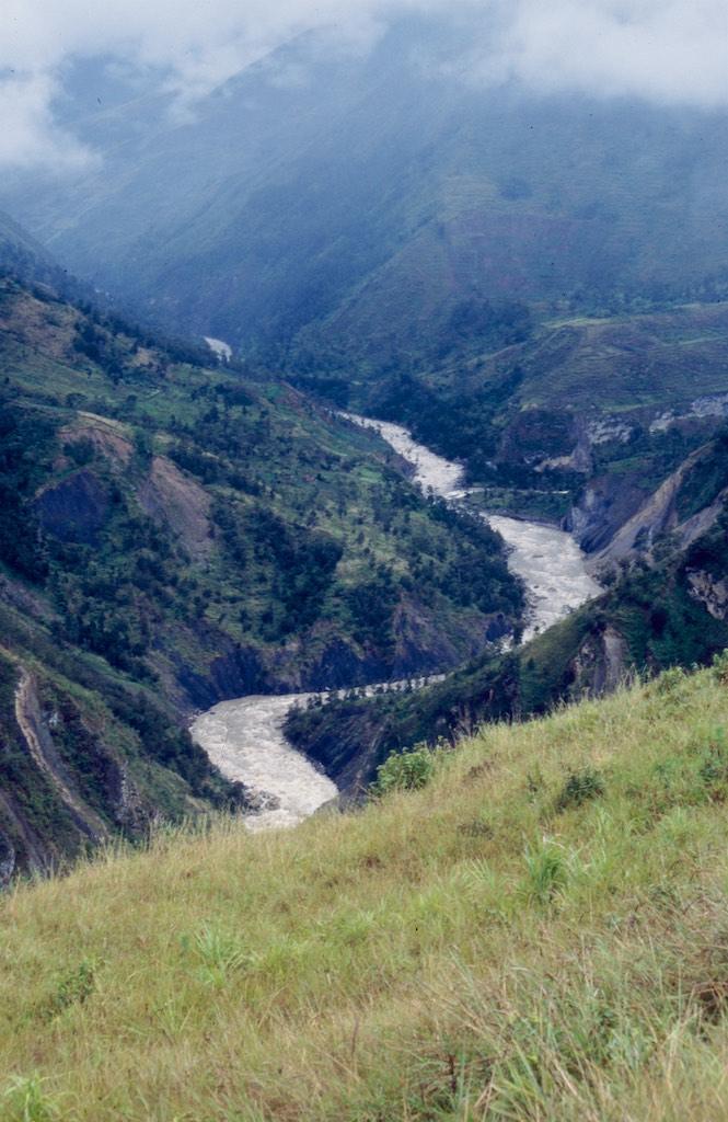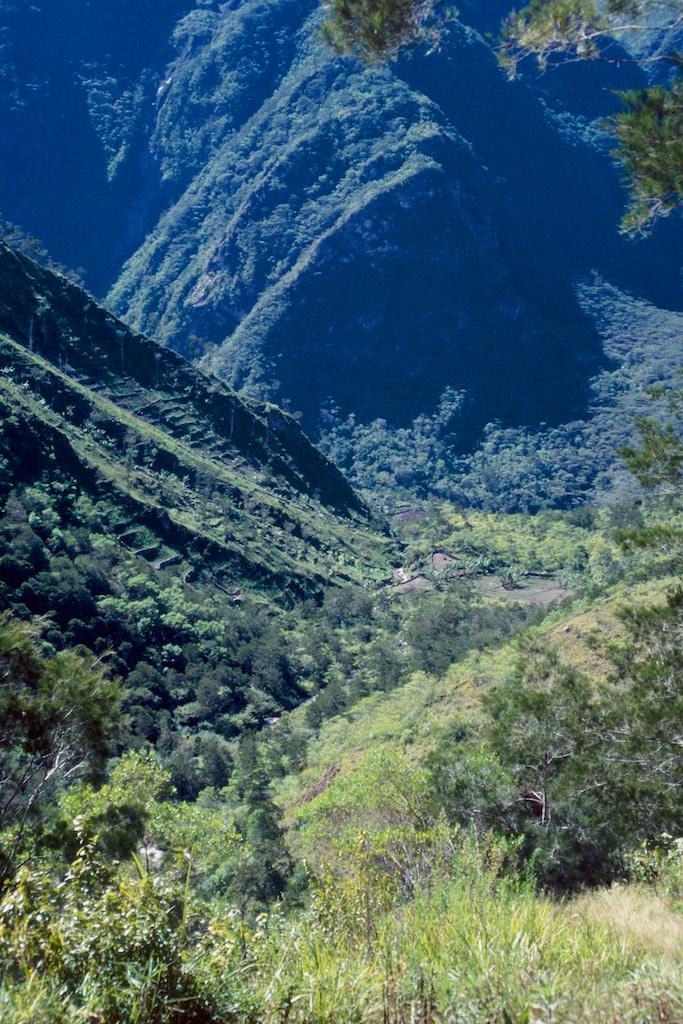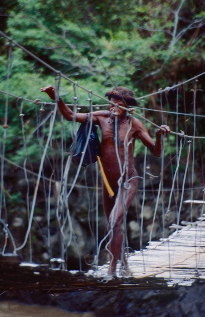 From Wusaren it was only a day and half walk back to Wamena. The scenery was changing again, the gorges became wider and more agriculture was to be seen. The typical Dani gardens covered the slopes. I noticed for the first time that coffee was being grown over here. Maybe the terrain was easier going or was it that I gained new energy by the knowledge that I had almost accomplished the trek. I don’t know. Fact was that I felt much better then the previous days and the number of breaks became also less. We crossed the Baliem valley several times over fragile bridges. The wild water under me made me dizzy sometimes and it was only after I managed it safely to the other side Elly told me that a couple of months ago two tourists drowned when they fell of the bridge. I was happy I didn’t undergo the same thing. One final hill to climb and we returned at the road where the trek had started a week ago.
