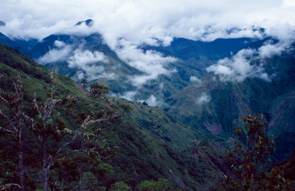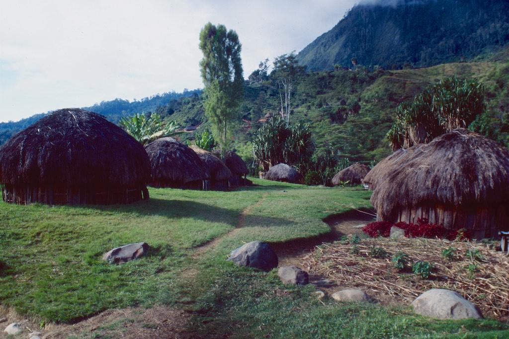 The next hurdle was a landslide we had to pass. A hole side of a hill was washed away with previous rains and the crossing was pretty tricky. I survived that one as well so now it was time for another steep climb. We were surrounded now by thick forest so I could not see how much we actually climbed. Every time I thought we reached the top there was another stretch to go. This was sometimes pretty frustrating but after 2 hours of sweating we finally reached our destination, Wesagalep. The village was built on a little plateau and overlooked the valley deep below us. The Baliem river now was nothing more than a thin white line. It was a beautiful sight especially as little clouds could be seen hanging below us. The whole effort was forgotten by seeing this magnificent panorama.