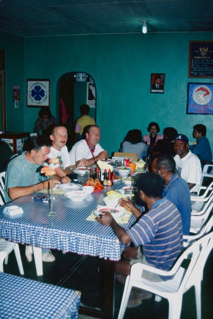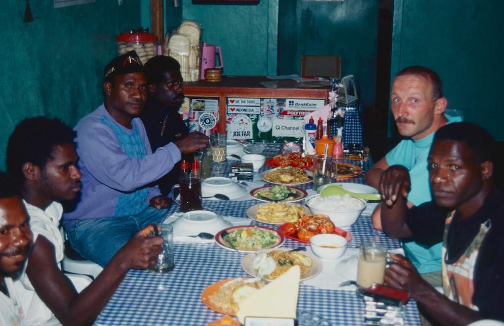 A minibus brought us back to Wamena. Exhausted but with a totally happy and satisfied feeling about all sights, sounds and smells of the last week. It had been absolutely fantastic. I had travelled extensively through a valley which had only been discovered 60 years ago. Mind teasing images I had only seen in a book so far now were part of my memory. Memories which still bring a smile on my face when I think of them. Also this time I invited Ebanus, Elly, Lemoera and Wasman for dinner. It became a wonderful evening.