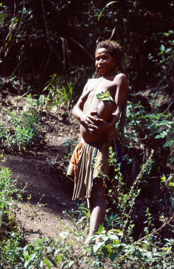 The second trek started in Kurma. It didn’t take me long to realize that this trek would be much more difficult than the first one. We started with a steep climb. I still remember being exhausted when I reached the top of the hill but I forgot about that immediately when I saw the unfolding panorama deep below me. In front of me I saw the Baliem valley with Wamena in the centre and behind me a narrowing gorge through which the Baliem river fought it’s way. From here it was a 12 day walk to the Asmat region, unfortunately a trip beyond reach… We walked for another hour until we reached a beautiful village where we stayed over the night. I noticed the different building style of the houses compared to the north of the valley. Also the gardens were divided by huge large stone walls instead of the wooden fences I had seen in the north. Ebanus explained me that over here it was much easier to find rocks to make the walls with which explained the difference.