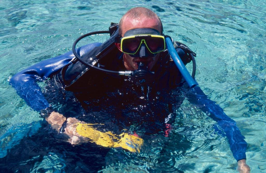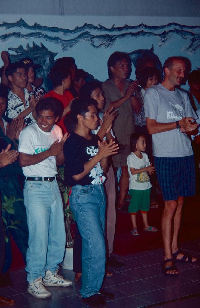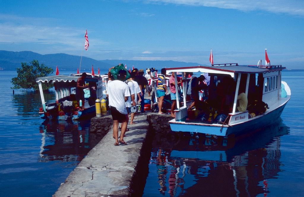 My stay in Irian Jaya had been phenomonal. Not even in my wildest dreams I could have thought about an adventure I had experienced during the last two weeks. But it had also been an exhausting experience and I definitely needed some time to relax and built up my energy levels again. Having qualified as a Scuba Diver a couple of months before I could not resist the temptation to do some dives as well on this trip and after some research I decided to fly to Manado in the North of Sulawesi to do just that. Relax and dive at Bunaken. It took me a complete day and 4 flights to get there. Wamena – Jayapura – Biak – Ujung Padang – Manado. When I finally arrived I was picked up by the staff from NDC Diving Resort and brought to my Bungalow. Not much later I met my fellow divers at the Nusantara restaurant for dinner and it did not take long before I was fully enjoying myself, still not being able to believe I arrived in such a different world from where I left earlier that day.