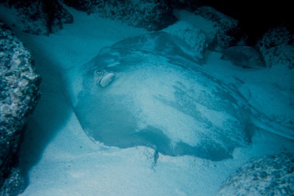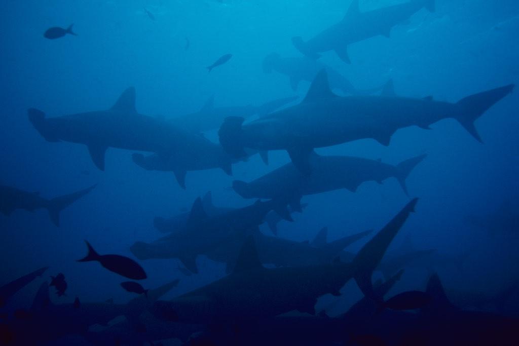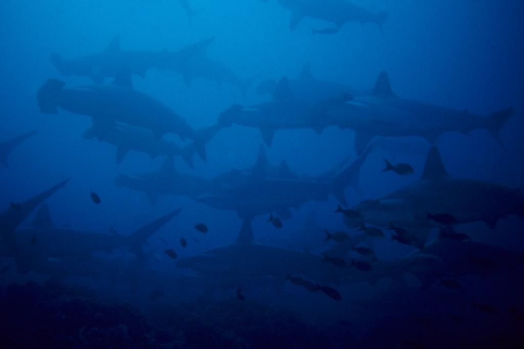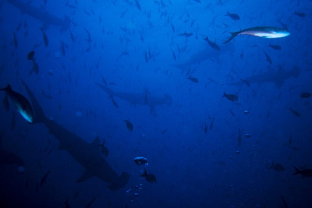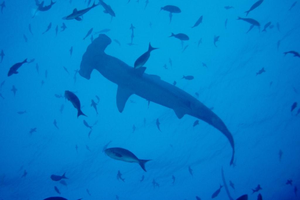 The most impressive though were the hammerhead sharks. During a single dive we saw hundreds of them passing by at 5 to 10 meter distance. Yes I felt a bit uneasy sometimes with this ceiling of sharks but it was certainly a splendid view. It happened on 2 dives that the passing of the schools of hammerheads lasted more then 20 minutes with 7 mesmerized divers watching this from a rock. Wow wow wow. The most scary moment however was when I was swimming in a school of creol fish. There were thousands. Suddenly they parted in front of me and 3 big Galapagos sharks appeared in the gap. They moved very slowly and only at a meter distance moved away. I think I skipped a heartbeat or two at that time of the dive. Also I saw a lot of turtles during almost every dive and twice we saw manta rays. They passed above me so close I could have touched them if I wanted. It was a beautiful event. Manta rays are so gracious in their moving, it is like they are flying instead of swimming.