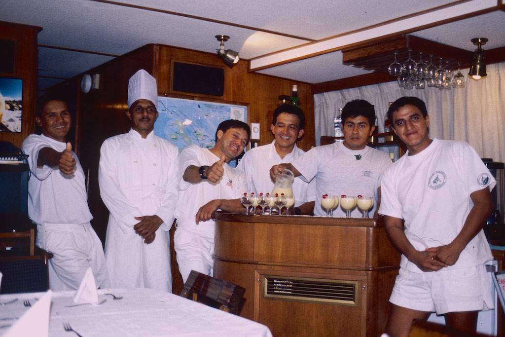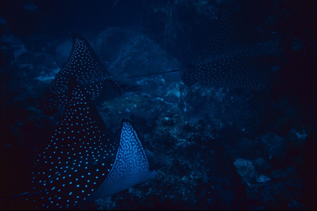 Then the diving. You can definitely say that every dive was one into the extraordinary. Visibility was not as good as [5 to 25 meters] you might expect on a tropical dive site and the water was pretty cold but what we saw was absolutely fantastic. It was great fun playing with the sea lions who were tumbling around and blowing bubbles continuously. There was really an interaction between the sea lions and the divers. Super! Can you imagine surfacing after a dive and around you blue footed boobies [birds] dive into the water next to you while they are fishing.. I’ve never seen birds during my dive until now… During all the dives there were big schools of fish. Sometimes there was more fish then water. The dives at Wolf and Darwin were most spectacular. Eagle rays, diamond rays, black stingrays, barracudas, numerous eels, creolfish, tunafish, jacks and all the usual other fish you can expect over here, all in great numbers and very very close..