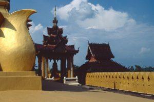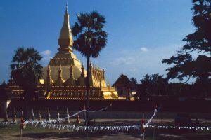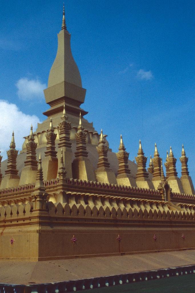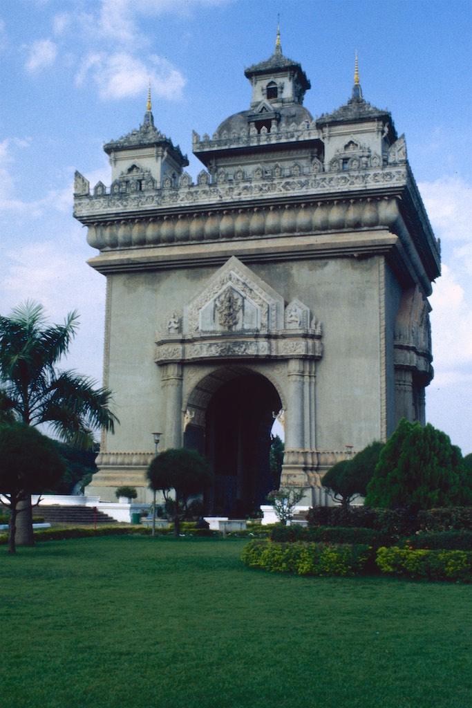 We took a motor trishaw to Pha That Luang, Laos national monument. It’s official name is Lokachoulamani, which means monument of the world. Also we visited two neighboring monasteries which were the only two left from the four which were originally built next to Pha That Luang. On the way back to the center of Vientianne we stopped at the Patuxai monument, Lao’s own Arc de Triomphe. Local people also refer to it as the vertical runway as it is built with concrete paid by the Americans which was originally meant to built the new airport from Vientianne.