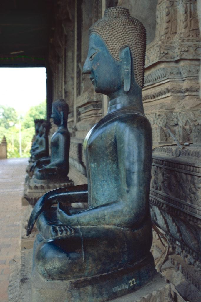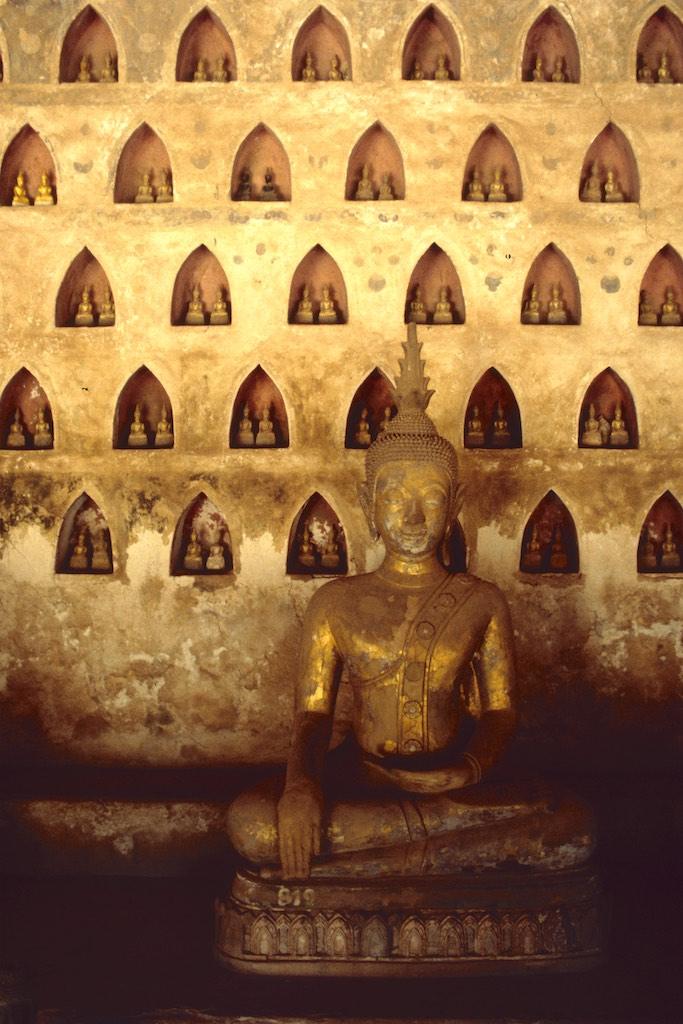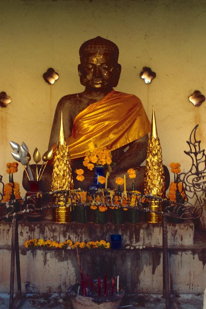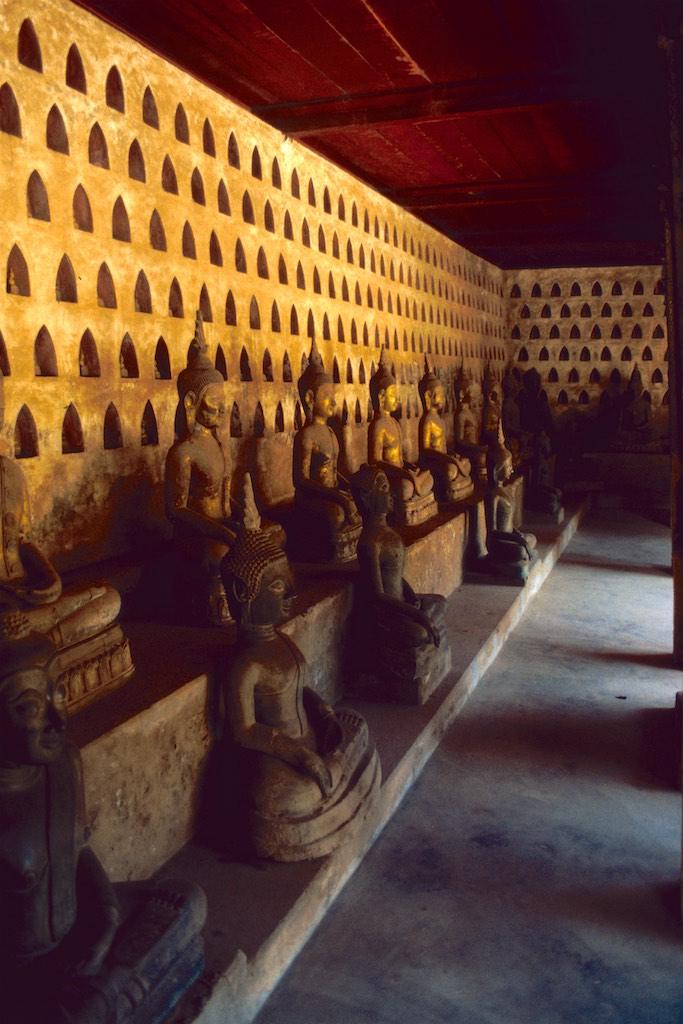 The 13th of October, our last day in Laos!!! We could hardly believe that time had passed by so quickly. Three weeks were gone like in a flash, but then when we looked back we had done a lot of things and gathered some real amazing experiences. One more day and there were still some places we wanted to visit in Vientianne. We started at Wat Si Saket, the oldest remaining temple of the city. It was built in 1818 in Siamese style and in the wall surrounding the place we could see over 2000 small silver and wooden Buddha statues, a beautiful sight On the other side of the street was the Haw Pha Kaew, a former royal temple, which was now turned into a museum.