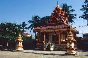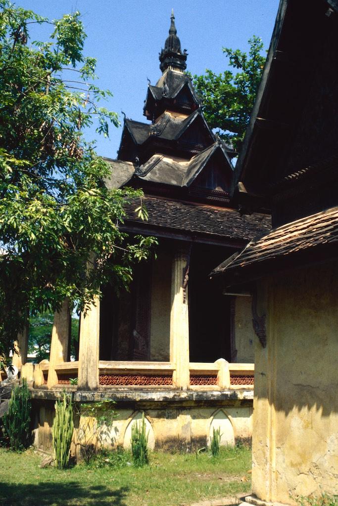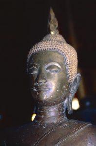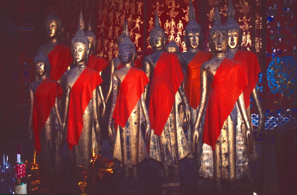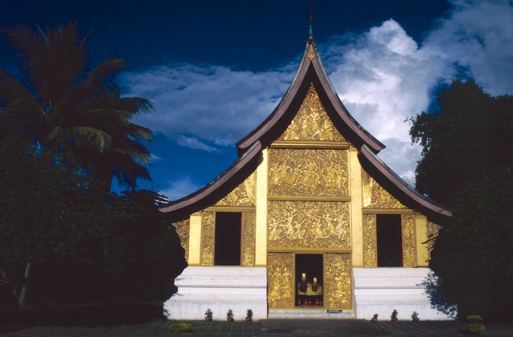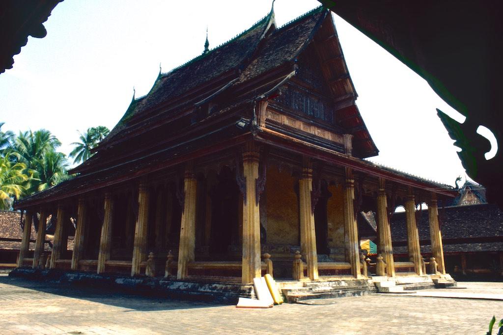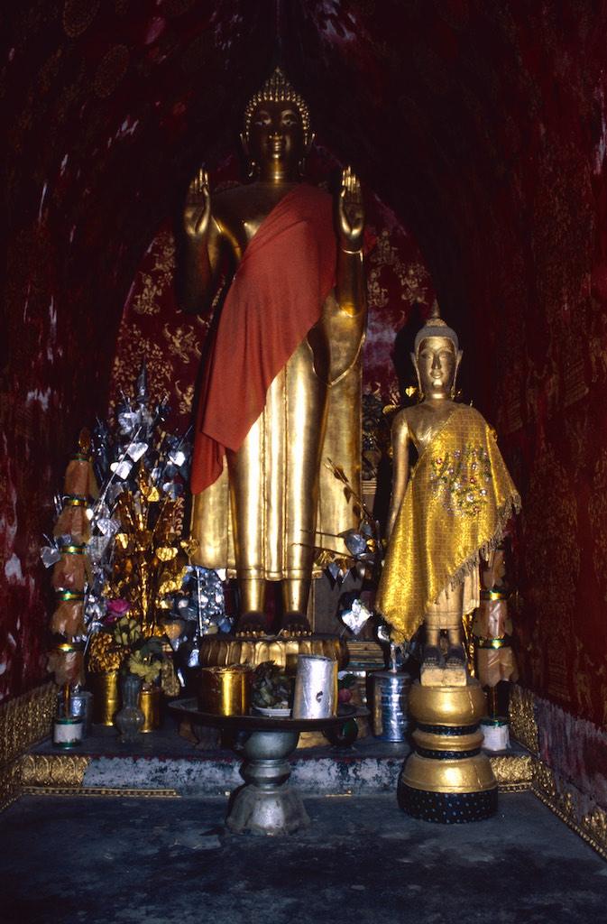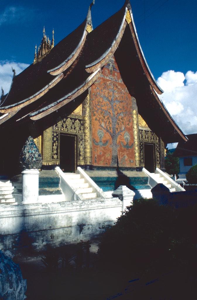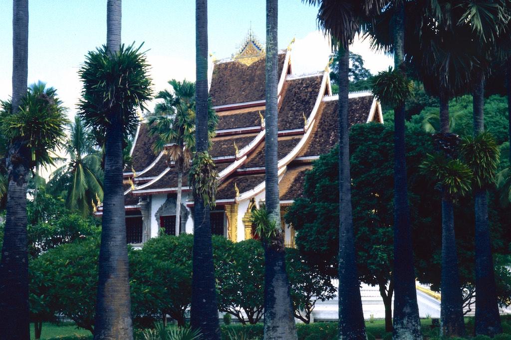 The next day we took a bus to Luang Prabang, which took us over 8 hours. Not a boring trip at all as the landscape we traveled through was of an almost unearthly beauty. Rice fields, small villages and every now and then we had a glimpse of the Mekong. The mountains were absolutely stunning. Somewhere in the evening we arrived at our destination where we relaxed after the long trip. After a good night of sleep we were fresh again so we could start our exploration. The first temple we visited was Wat Aham Ontama Thany, a relatively small temple which once was the housing of the Sangkhalat. We continued our walk to Vat Visounnarath which was in the same neighborhood. It’s high peeked roof overhanging roof which sloped over the terrace was of an extreme beauty.