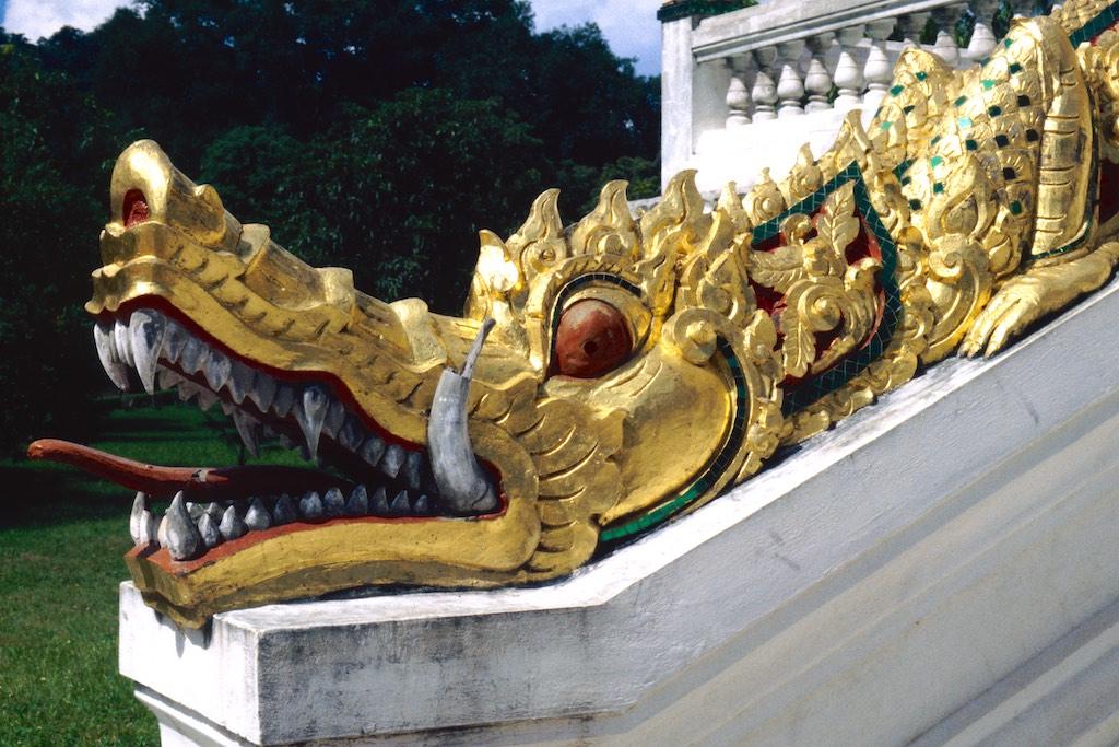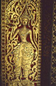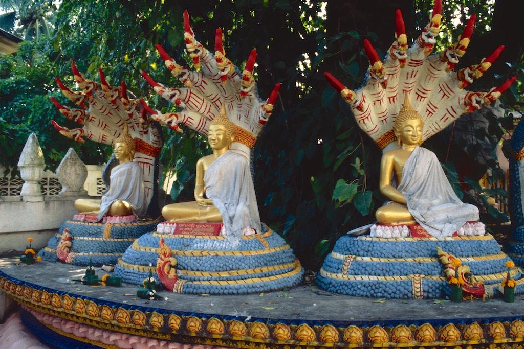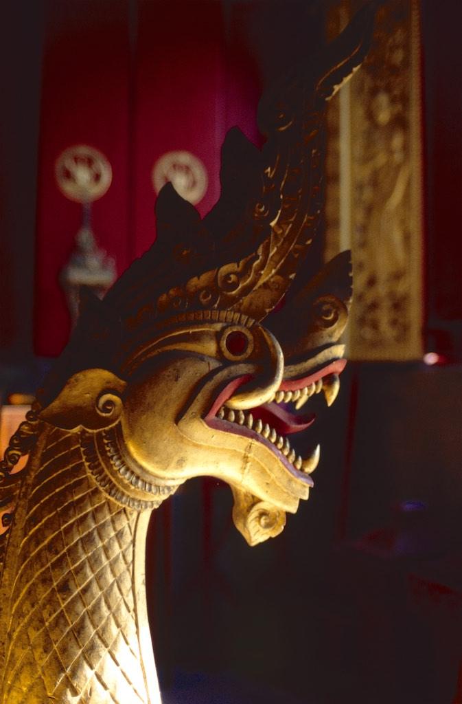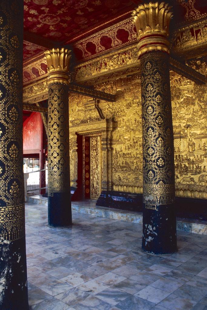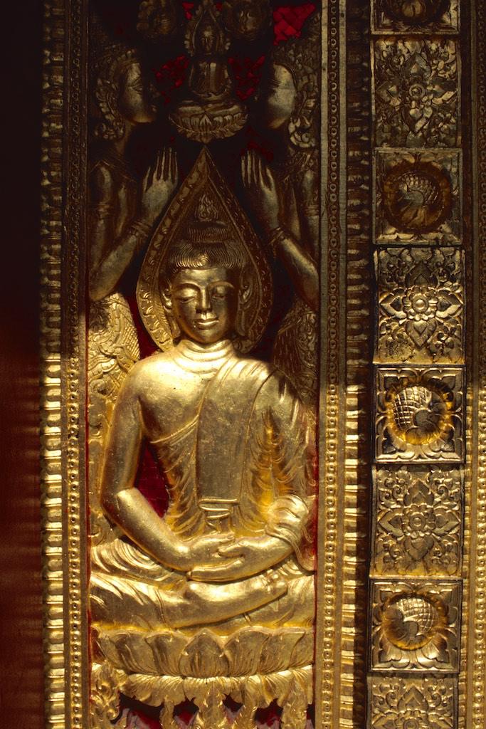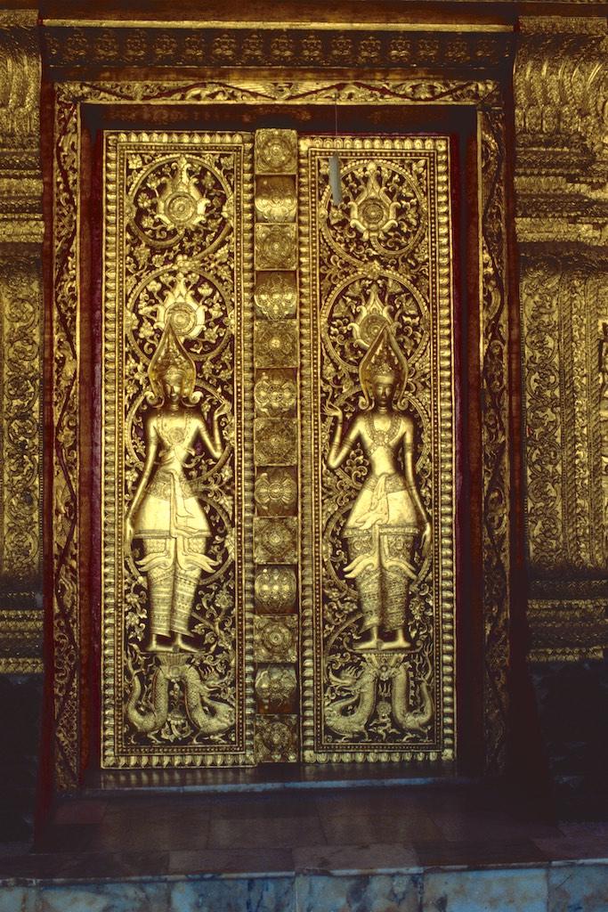After having spent quite some time at the market we headed on to Wat Mai Suwannaphumahan, the new temple, which was inoculated in 1928, although other sources say it was already built in 1797. The gilded decorations and pillars were a treat for our eyes.