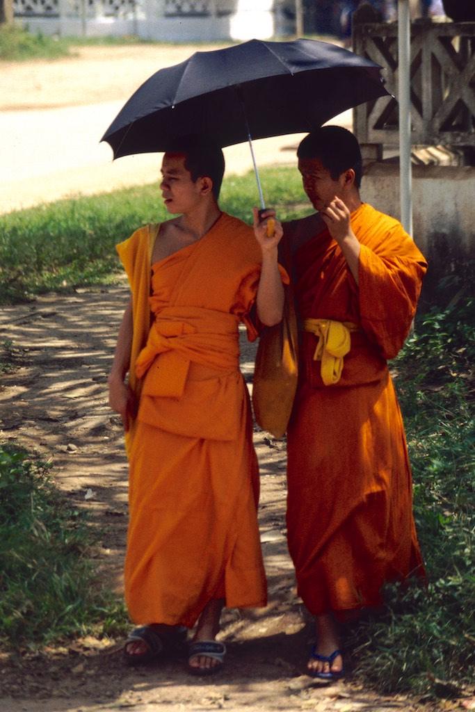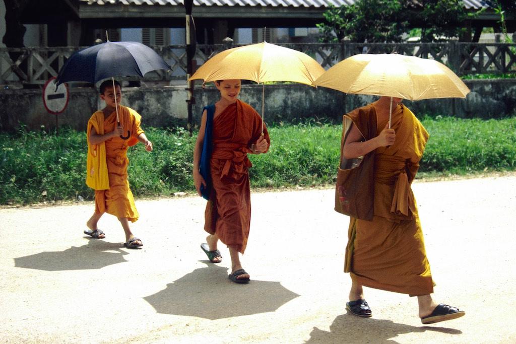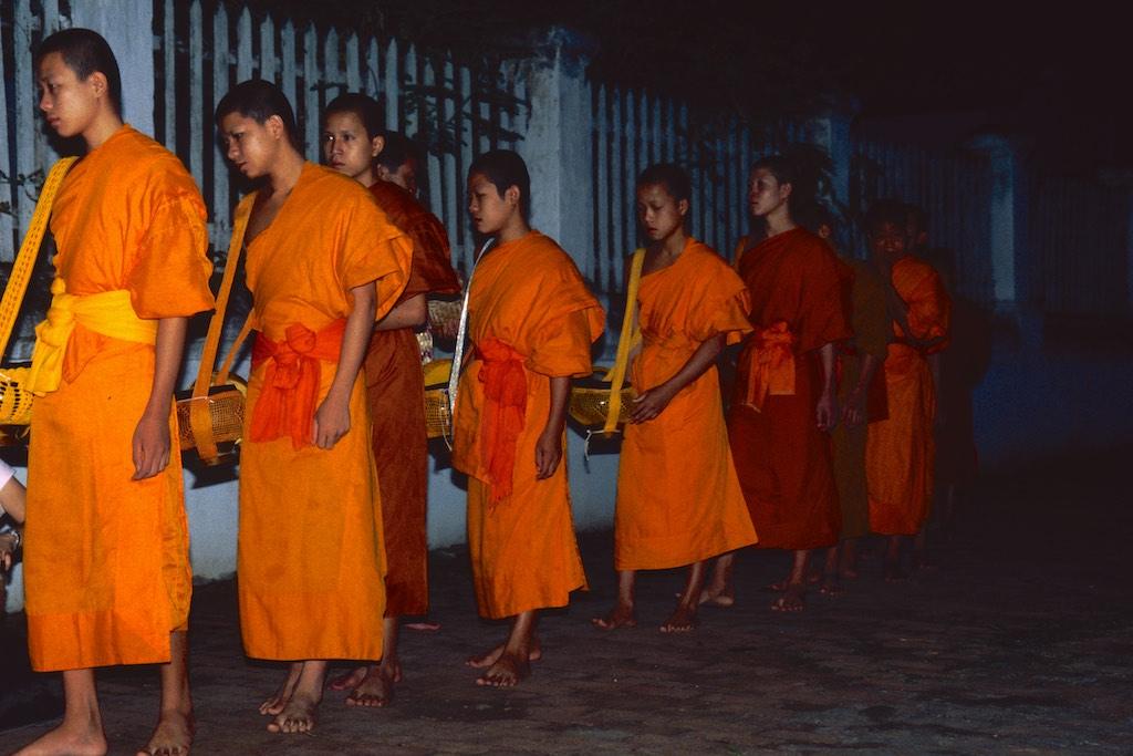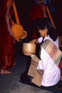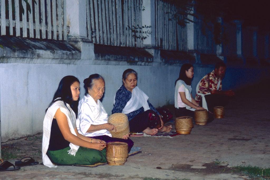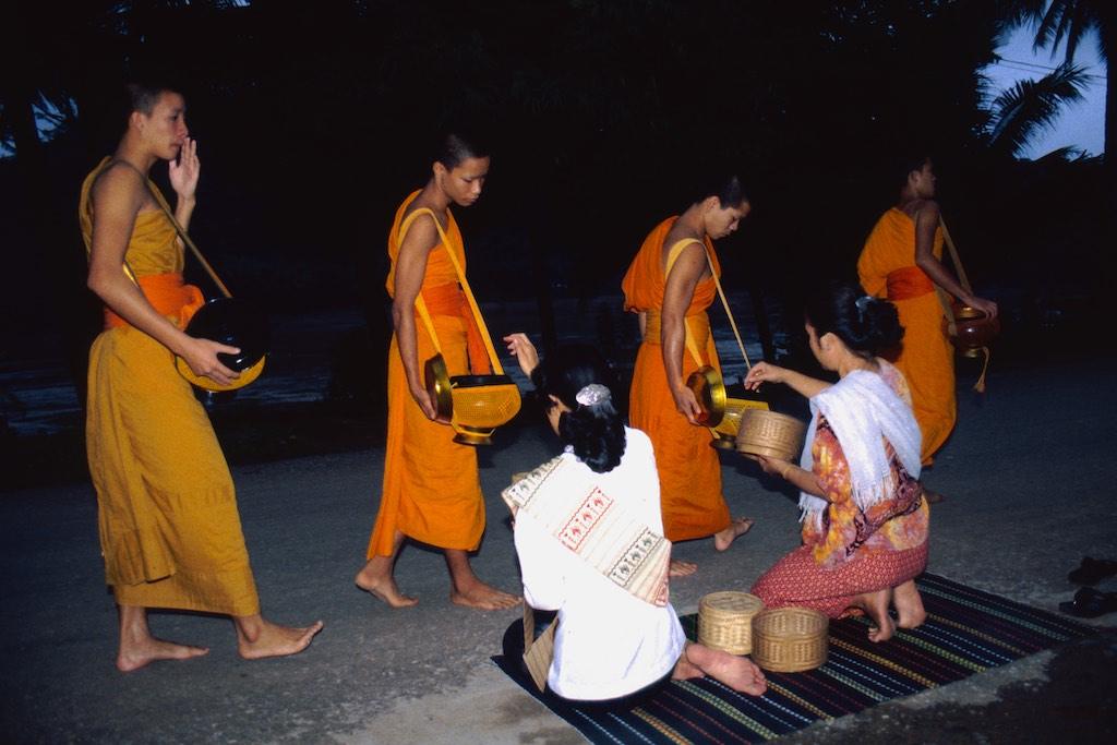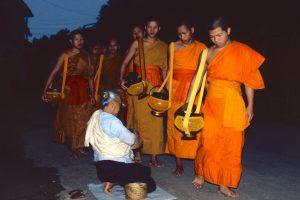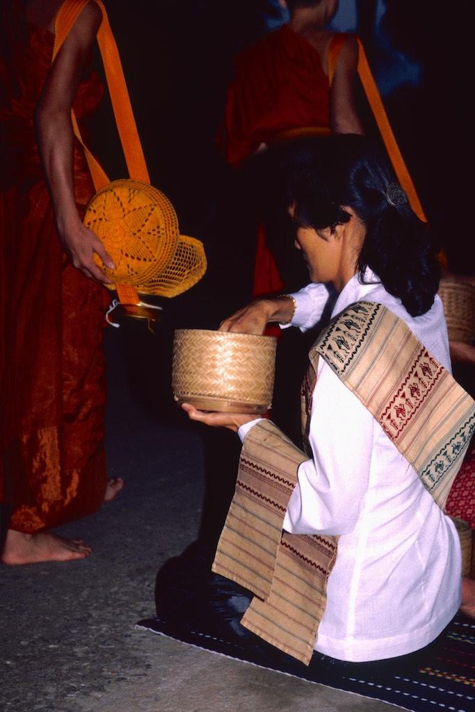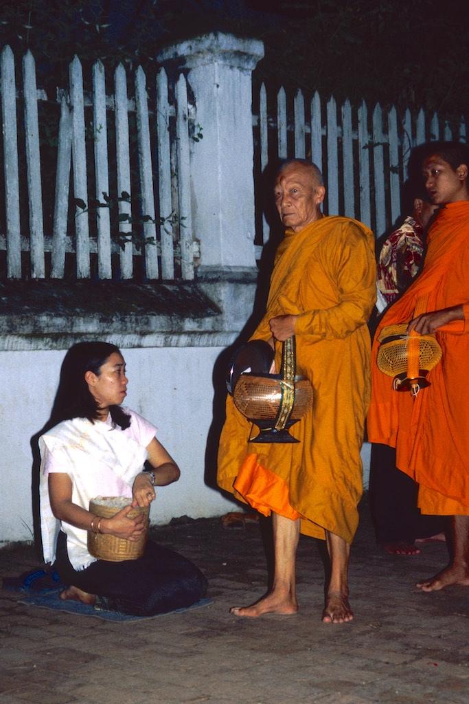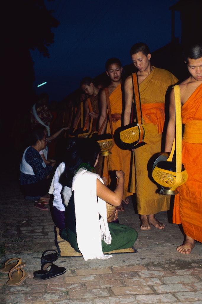 The next day we woke up extremely early (and this was Silvia’s idea, not mine) because we wanted to witness the offering of food to the monks by local people. This ritual happened every day at 5.30 in the morning. In the darkness of the morning (or should I see night) we already saw locals sitting on the side of the streets with a bowl of rice. A bit further down the streets a long row of monks arrived and when they passed the villagers each of them was offered some rice. It was a great sight. Slowly the sun woke up us well and light filled the streets. We went for an early breakfast and then headed back to the guesthouse for a bit of extra sleep (and yes, this was my idea).