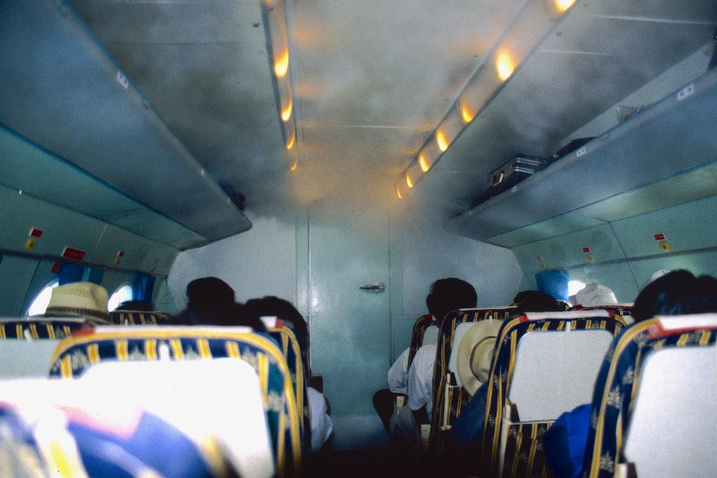 The next day another 35 minute Lao Aviation adventure brought us back to Vientianne, the capital. Condensation filled the cabin during the flight, safety lights were broken and neither Silvia or I felt very comfortable during this short city hop. Anyway, we survived and were happy to have both our feet safe on the ground again.