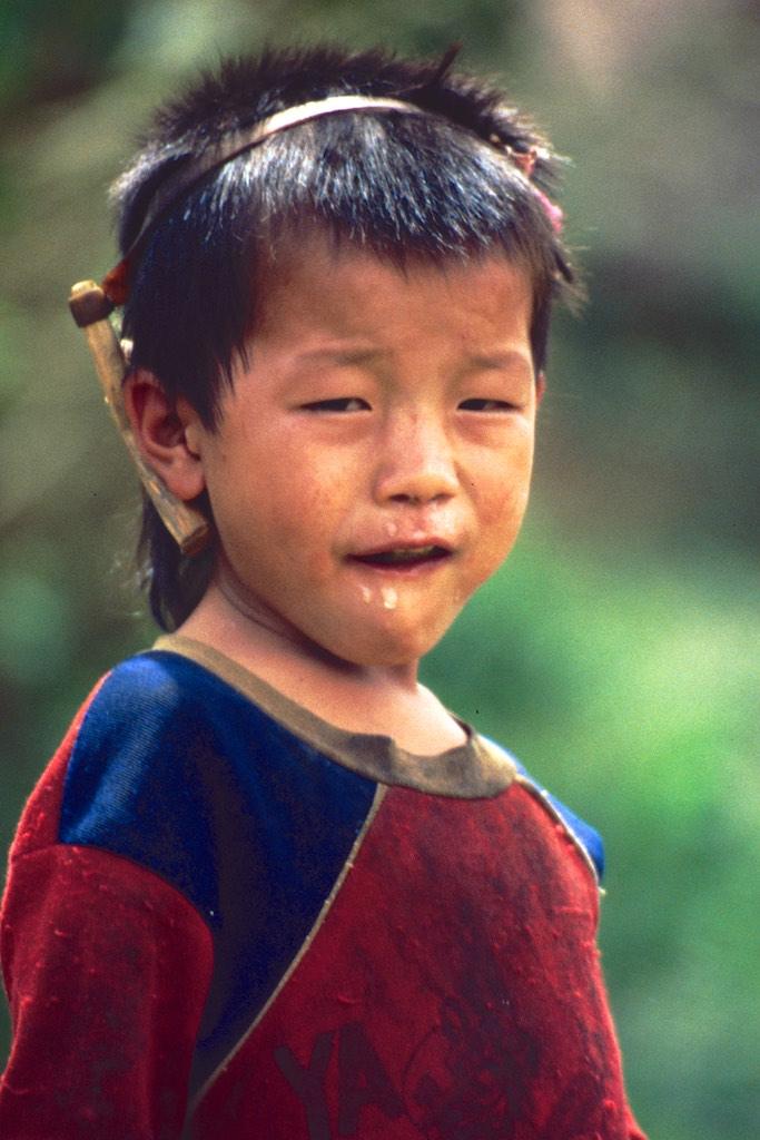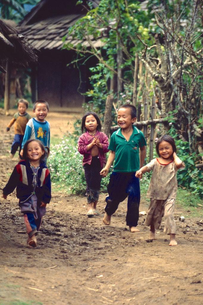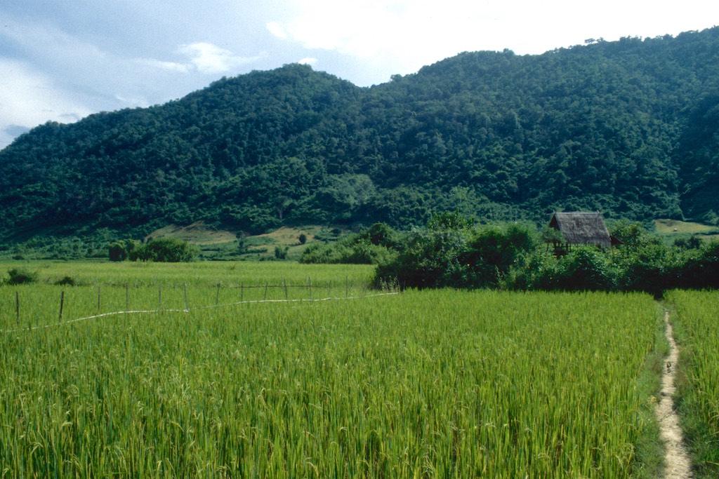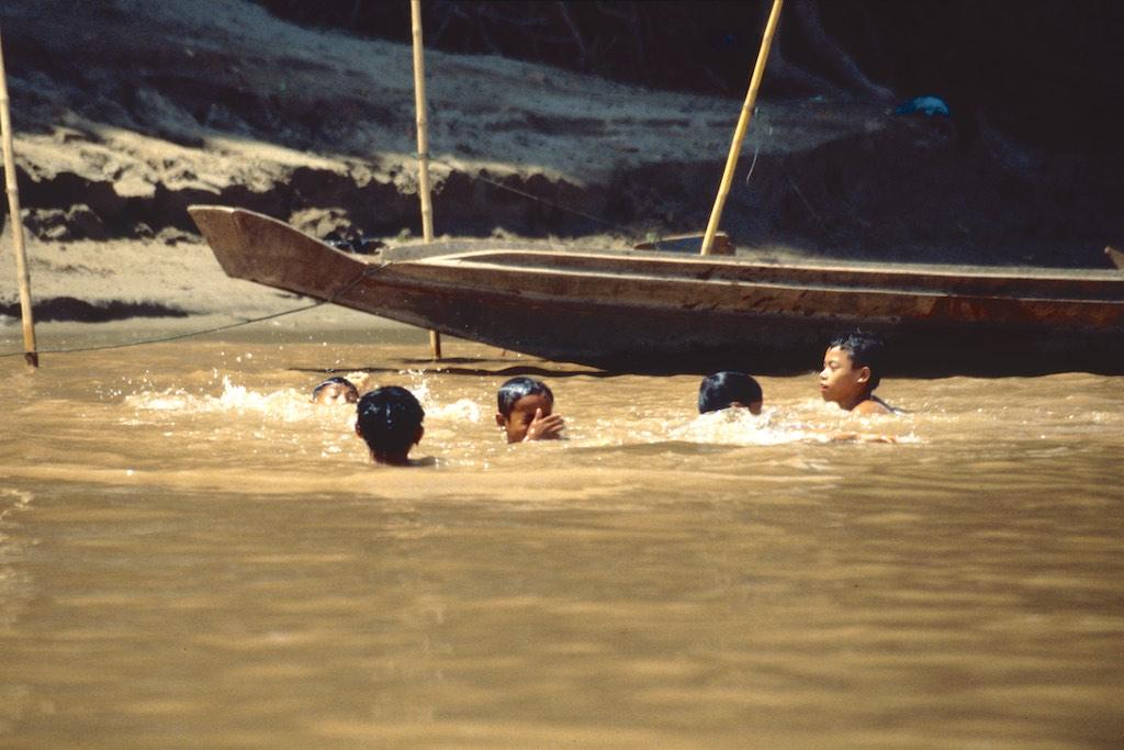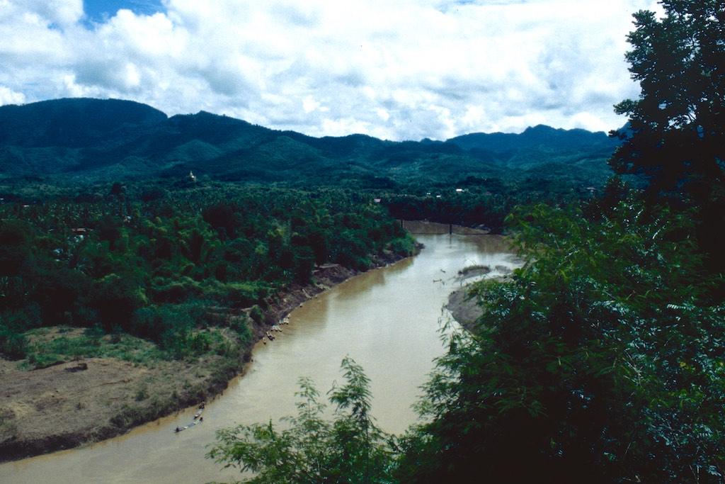 We stopped at a picturesque village called Ban Tha Bean where a truck was waiting to bring us to the Kwang Xi waterfall. Rice fields and palm trees wherever we could see. Stunned by the breathtaking landscape around us we hardly noticed that we arrived. Now, I have seen a lot of waterfalls during my travels but this one was surely special, not to say it must have been one of the most beautiful ones I’ve ever seen. Water poured down in layers over several terraces in to a turquoise pool. The air was like a curtain of moisture. Stunning. We followed a small path to the top of the waterfall and after we crossed it we descended again on the other side. Halfway down were a couple of pools where we could go for a swim. This was really paradise. Neither of us wanted to go back but we still had to travel 32 km. upstream, back to Luang Prabang so we really had to force ourselves to go.