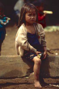 However, it was not the city itself we came for so we quickly arranged a taxi which brought us to the plain of jars. The landscape around us was definitely strange. In a way it looked like a giant golf course, nothing grew on the hills, just grass. Perfectly round holes were shattered all over the place. This could not have been natural… Indeed it wasn’t. The whole landscape was the result of the American secret war in the early 70’s. The area around Phonsavanne had been heavily bombed and saturated with agent orange and napalm which even almost 30 years later could be witnessed this macabre scenery. As a matter of fact the USA dropped more bombs in Laos during the “secret war” than they did worldwide during world war II. The Lao people became victims of a war that was going on in the area where they were unwontedly became drawn into.