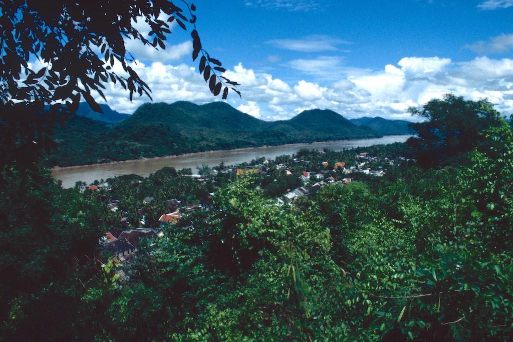 While we were enjoying the peaceful street atmosphere in Luang Prabang we arrived at the foot of a small hill in the center of the town. We climbed the hill via the dragon stairs up to Wat Thammothhayalan. Even a bit higher Wat Phu Si was built. From here we had a magnificent view over the city and the Mekong river which laid 100 meters below us.