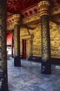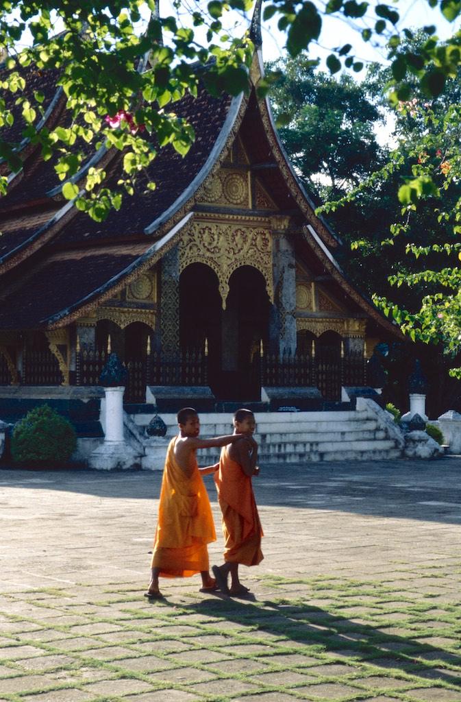 Once we descended again we enjoyed a terrific lunch in one of the many fabulous restaurants (Luang Prabang is really a delight for a traveler’s stomach). Totally satisfied we walked to Wat Xieng Thung, the temple of the golden city. It was built on the spot where the Mekong and Khan rivers joined and is one of the most beautiful temples in town. We had some nice conversations with some of the young monks who were eager to practice their English. One of the monks showed us a letter in which he described his wishes for the future. He wanted to study at the university and after that to become a fisherman, like his father. However most of all he wanted to marry a slim and sexy girl! (So who said that monks don’t appreciate earthly pleasures…)