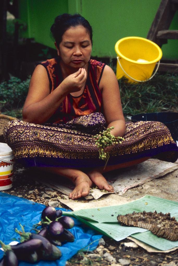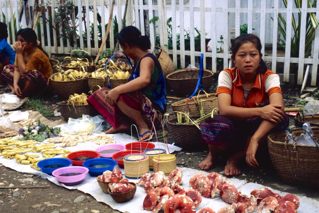 When we woke up again we started our last day of exploration in Luang Prabang. Our first goal was the local market. Meat, fish, vegetables, fruit and of course baguettes (one of the good things the French left behind in Indochina) were on sale on a small alley. It was a colorful scenery and ones again Silvia and I were delighted, markets being one of our favorite spots to hang around.