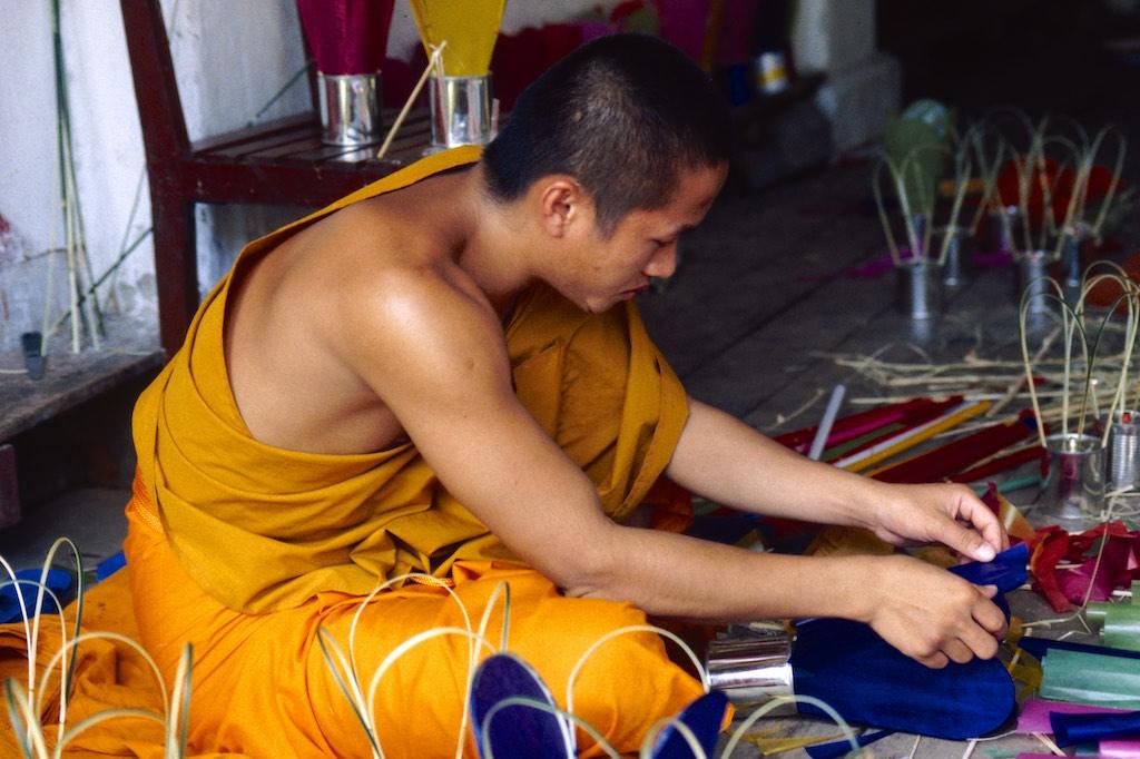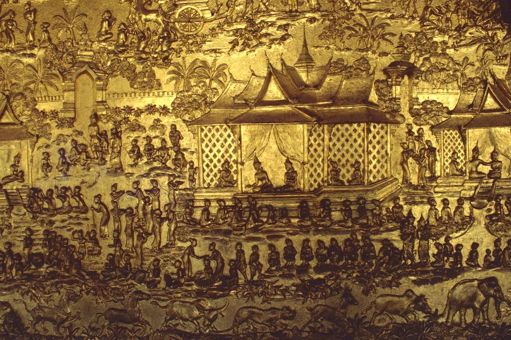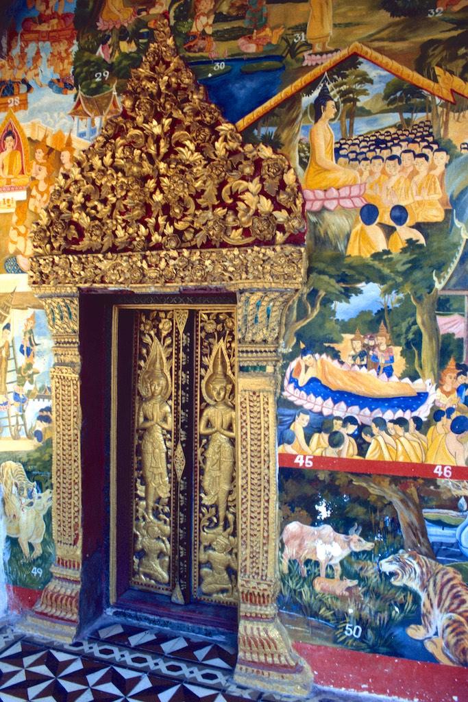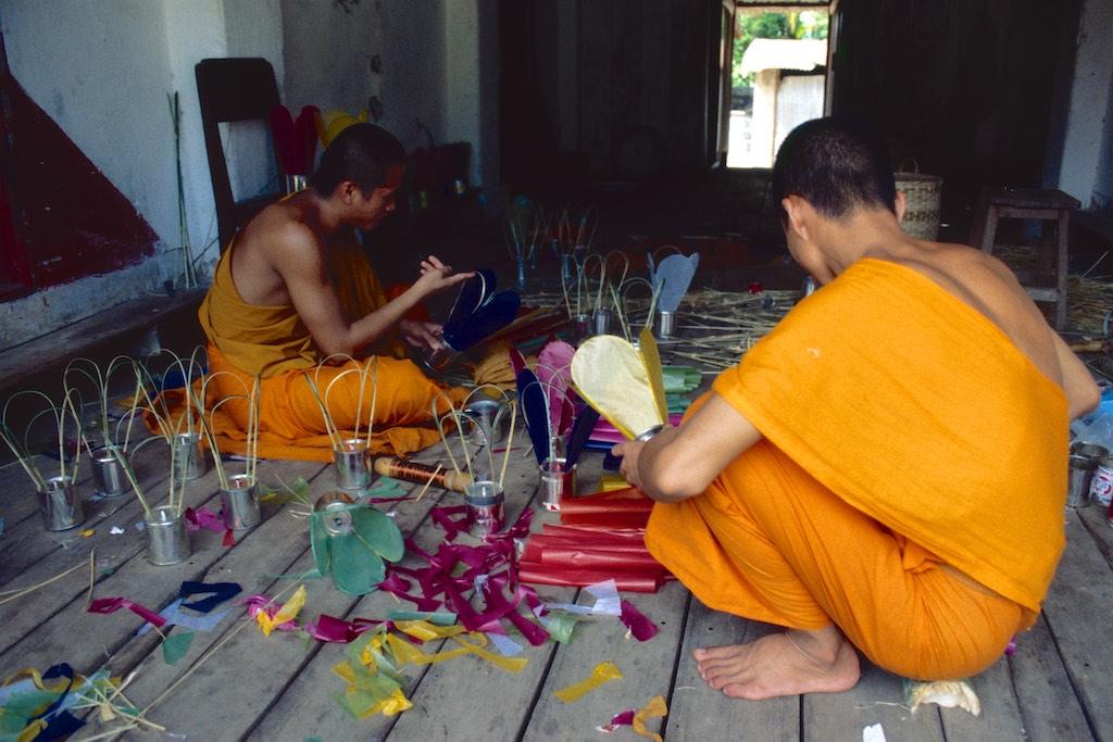 We continued to Vat Choumkhong Sourintharame (I think I already mentioned that Luang Prabang is mainly a city of temples). Over here we saw monks busy with the decorating the exterior of the temple. It was heartwarming to see how precise they were and with how much love and tender care the work was done. Another temple we happened to pass by was Vat Sensoukharam, after which we spend the rest of the day shopping, a good meal and of course a herbal steam bath and massage.
