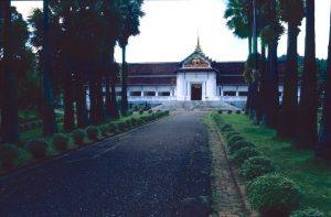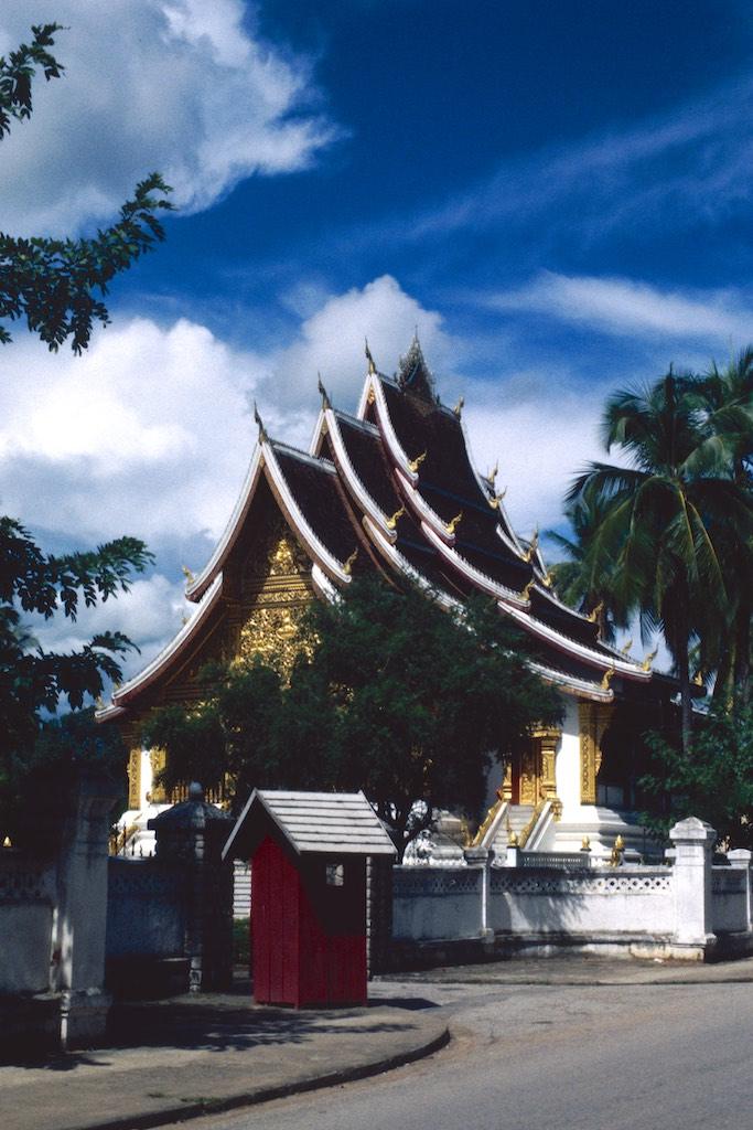 Not far away was the Royal palace which since the revolution in 1975 is in use as a museum. The palace, locally known as Wah Kwam, the golden hall, was built in traditional Luang Prabang style with French beaux arts elements. It was interesting to see some old artifacts, walk through the throne hall and see the private quarters of king Sisavang Vong and his wife.