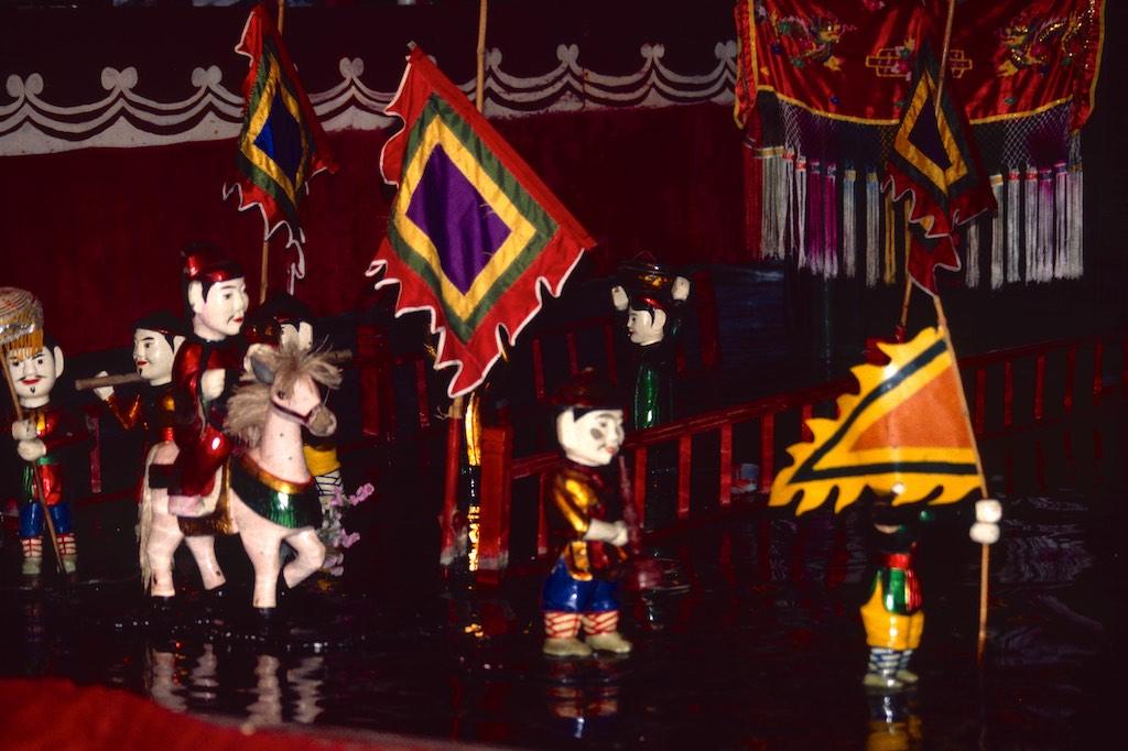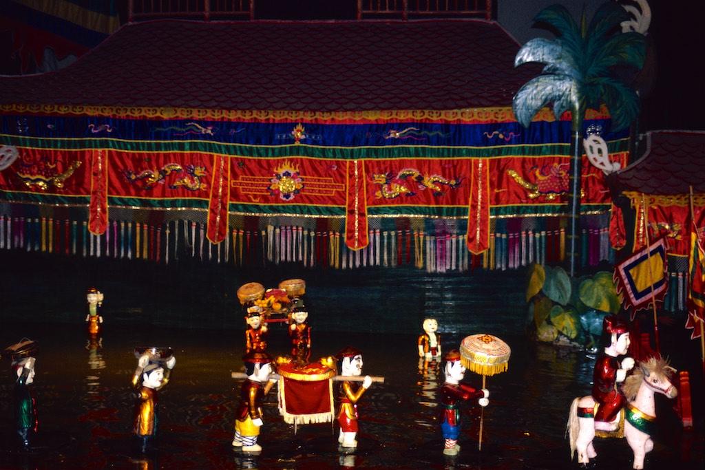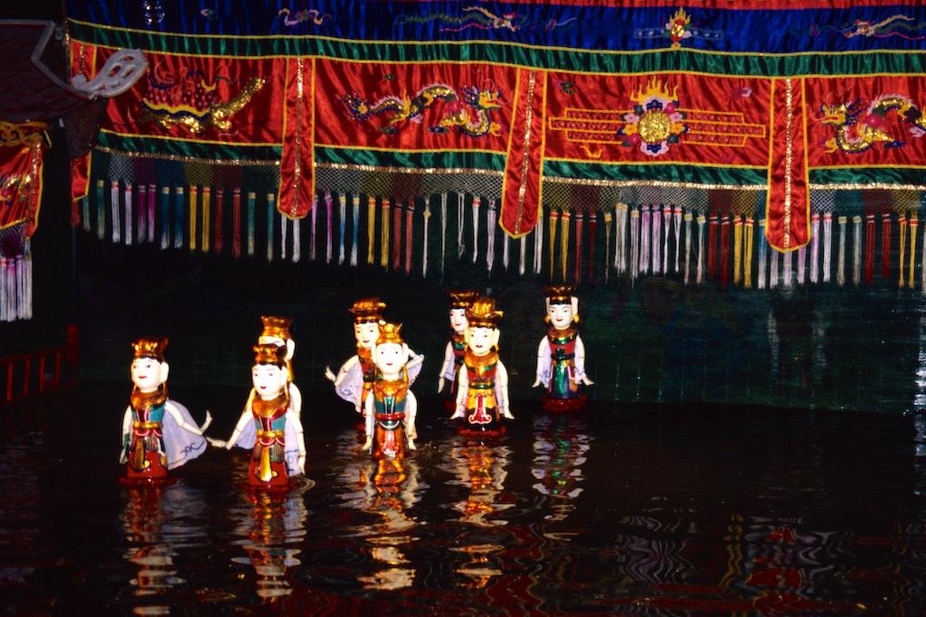 As soon as we found a hotel in Hanoi’s old quarter we went on a walk, since it was still raining we remained in the old quarter and breathed some atmosphere. I was immediately hooked on it. A beautiful lake was not far from our place, great colonial houses and trees everywhere in the streets. Really charming. Time passed by quickly. After a good meal we visited the water puppet theatre, an ancient form of northern Vietnamese entertainment. Both of us were stunned by the skills of the performers. Fire spitting dragons, processions and very humorous scenes made us forget the puppets were just of wood. Each of them seemed to have a character of it’s own.