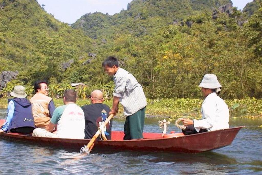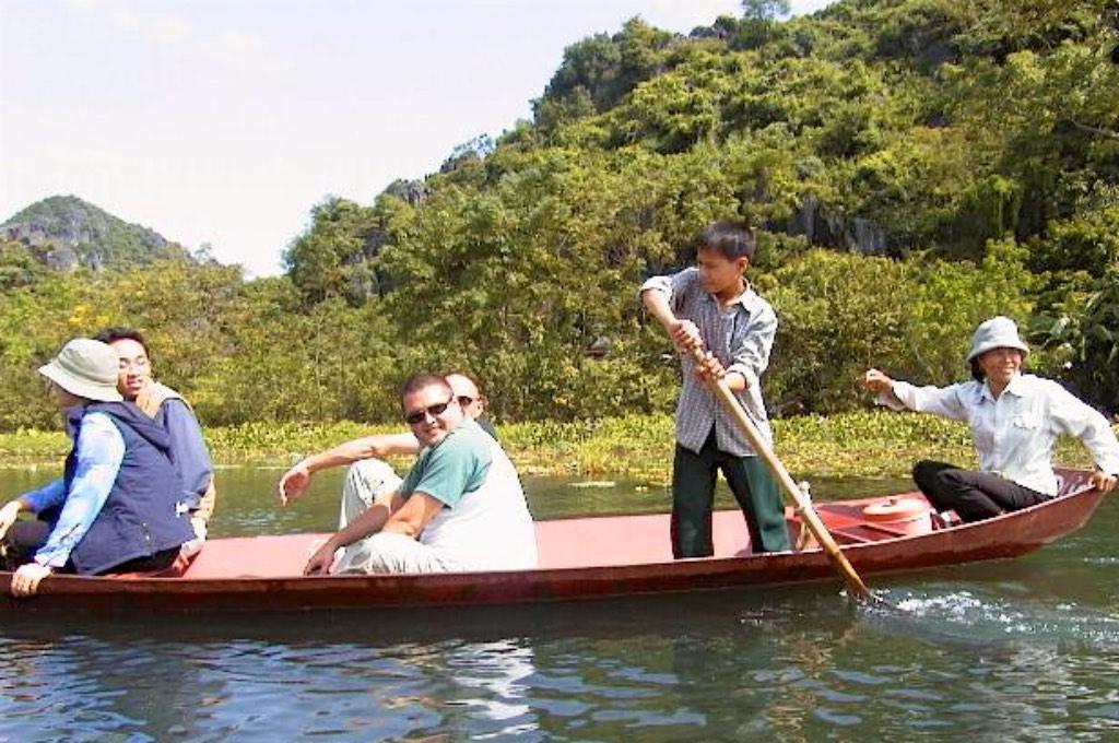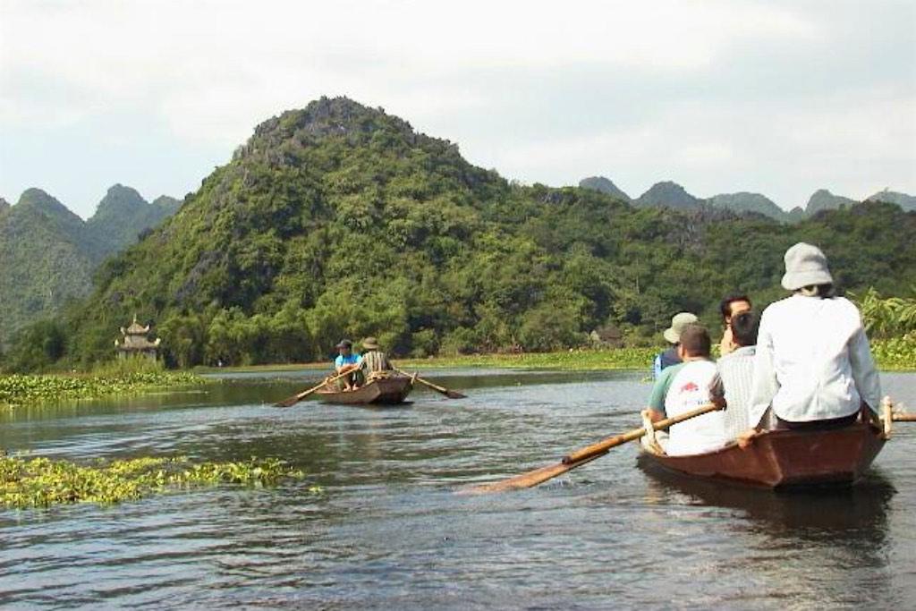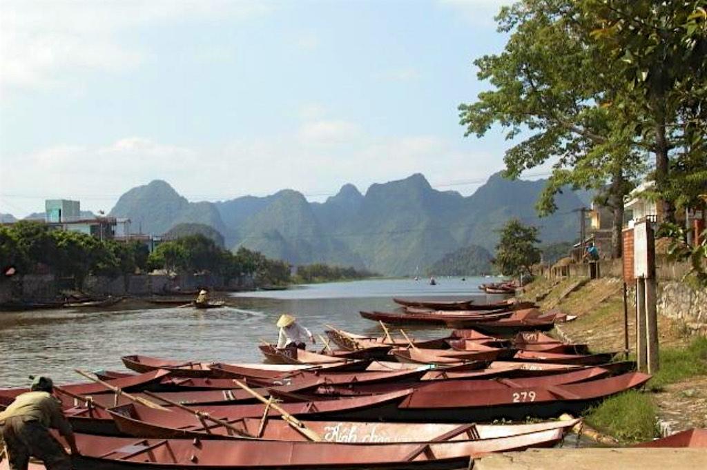 The second part of the journey was done in small metal canoes over the perfumed river. The landscape was spectacular. Rice paddies, limestone mountains with lush shades of green everywhere. I enjoyed every single minute of it. One hour, one lost and one broken paddle later, we moored at the riverside and we could start the last part of the trip.
