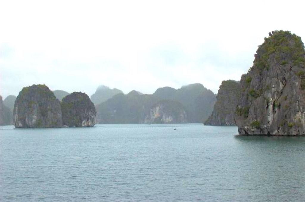 Another early rise. Besides the perfumed pagoda trip we also organized a 3 day tour to the Halong bay with the people from TF handspan. Once again we were picked up by bus and after short tour through Hanoi we headed north. It was a beautiful trip. On the way down there we stopped at a handicapped people’s handicraft center and after four hours we arrived in Halong City where we had lunch before boarding our boat. Halong bay, with over 3000 islands, is one of Vietnams magnificent natural beauties. The islands rise steeply out of the clear waters of the Gulf of Tonkin. Although the weather was not optimal I totally enjoyed the stunning scenery. None of us was able to spot the legendary dragon which is supposed to live in the area but there was enough to enjoy.