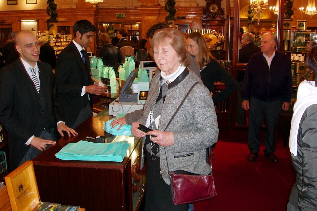 With the city of London being so nearby we left that as our last day trip before coming home. Although it was extremely crowded aunt Nanny felt at ease and was enjoying every moment of our time in the city. At one point we did loose her whilst on the way to Fortnam & Mason. Fortunately we did not have to look for her for long. We had passed St. James Piccadilly church shortly before we lost her and there was a charity market on the grounds. Knowing aunt Nanny it was obviously she got distracted and slipped in there to find anything that caught her eye. We found her in a deep conversation with one of the locals, we should have known…