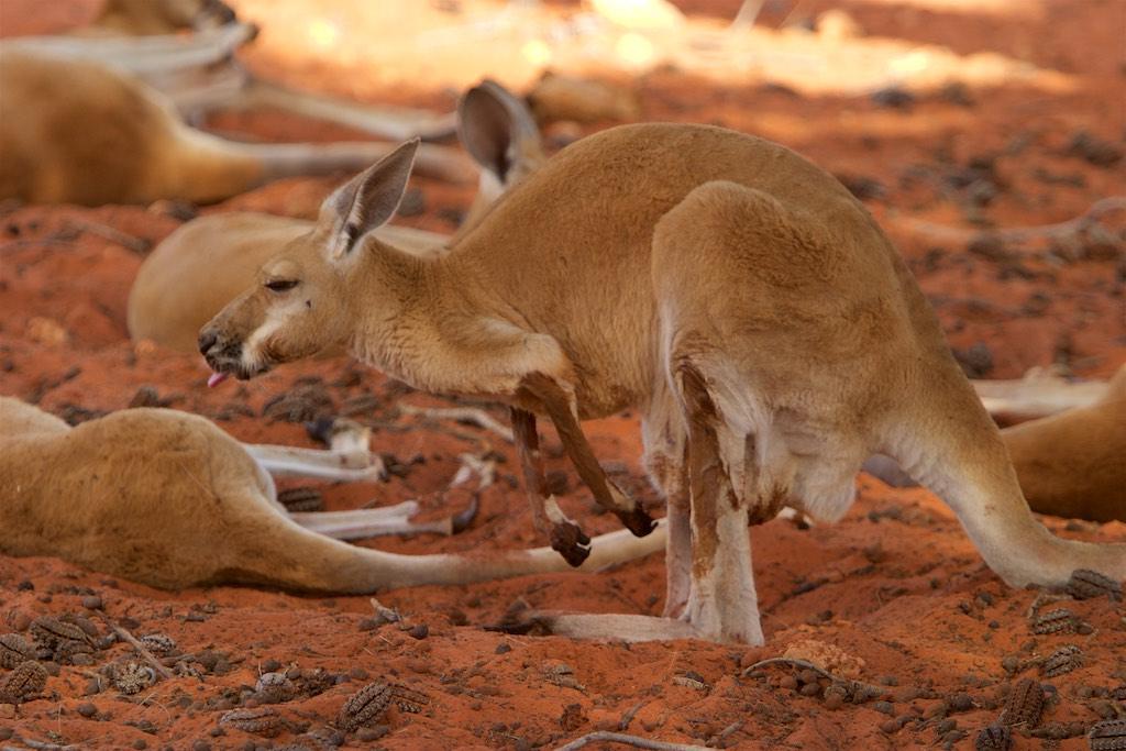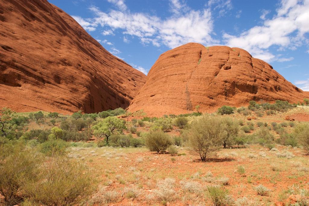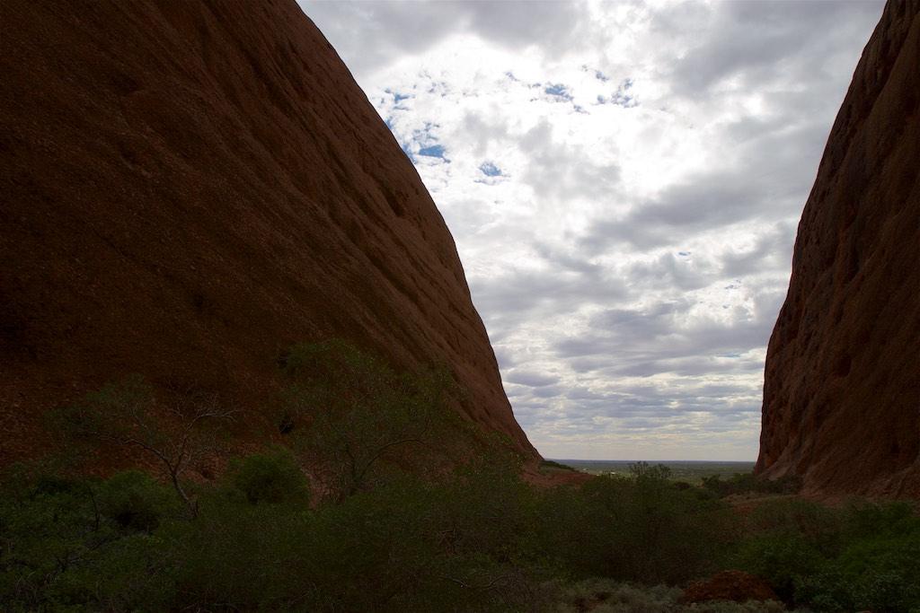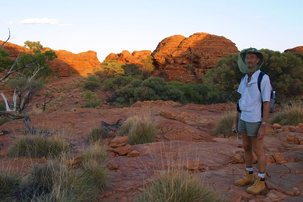 In the afternoon we visited Katja Tjuta as well and walked through a canyon over there. I must admit the both of us consider Katja Tjuta even more impressive than it’s famous brother Uluru. Oh, did I mention the heat and our little friends??  Flies, flies, flies all over the place. They drove us to complete madness but after having bought a fly net (the best 6,5 dollars ever spent at the red center) we felt much better and our little ‘friends’ were much more bearable.