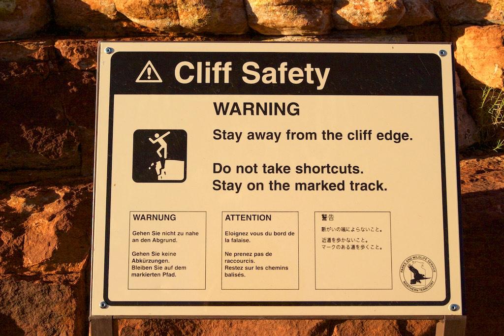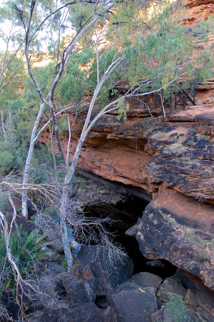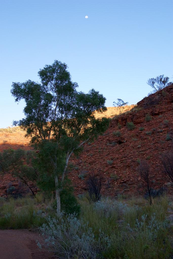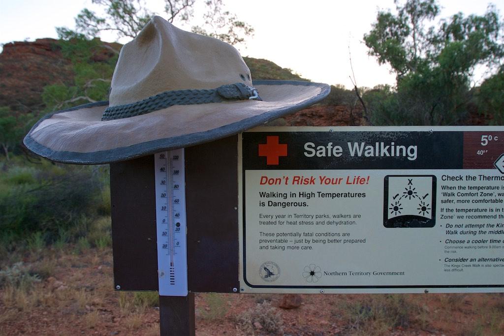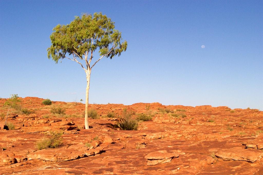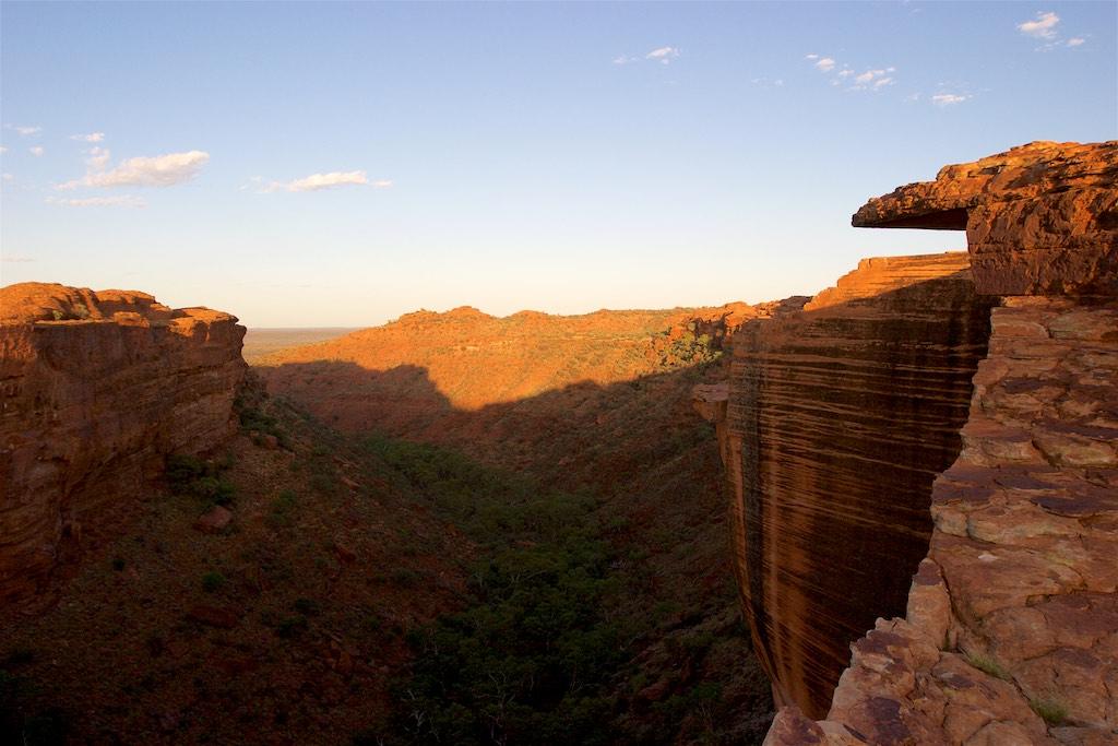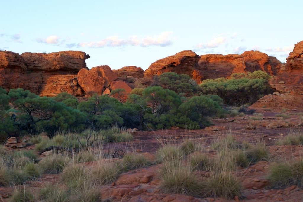 At the end of the afternoon we arrived at Kings Canyon resort, relaxed at the pool and enjoyed a nice dinner. Once again we went to bed early since we had to rise again at 5.15 (which is quite a regular on this trip). The next morning we drove off before sunset and climbed the steep ascend to the rim of Kings Canyon before the sun was up. This turned out to be a good idea, since it was ‘only’ 28 degrees at that time… The walk itself, well, what can I say, it was almost 4 hours long but the spectacular lookouts were worth every drop of sweat. Those of you who have been here will for sure know what I mean. It was a bit scary to sit on an overhanging piece of rock with over 100 meters below us the bottom of the canyon but we did it anyway and felt like we did something daring and special.