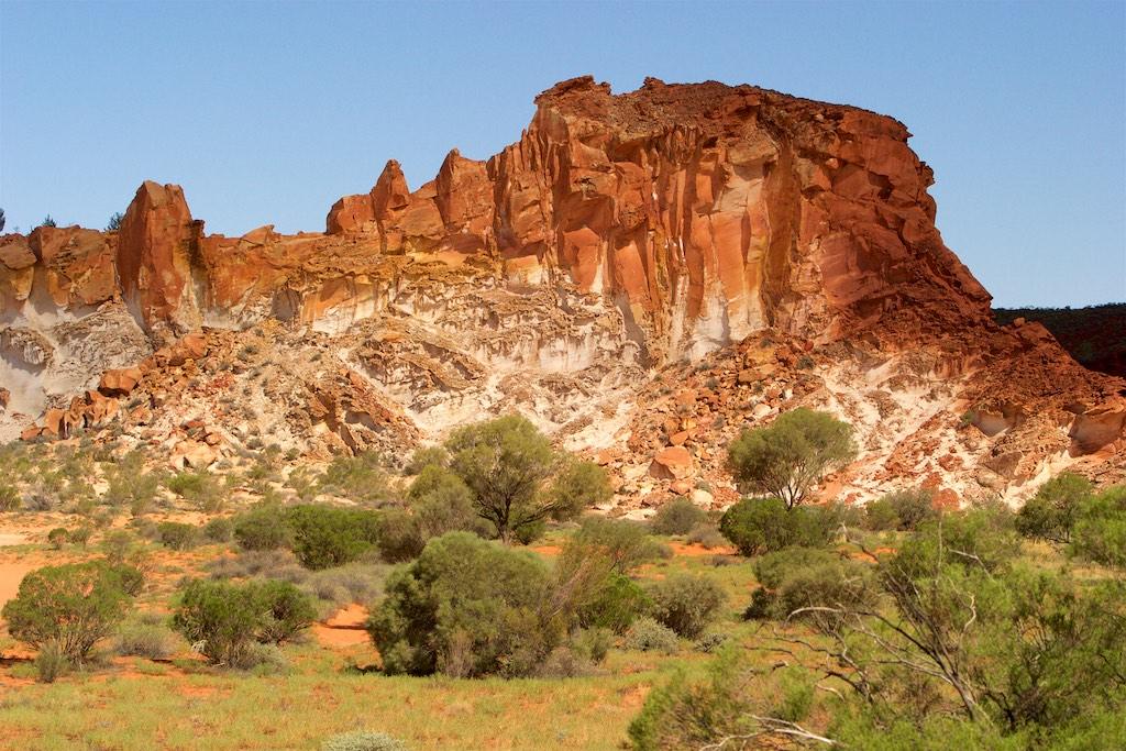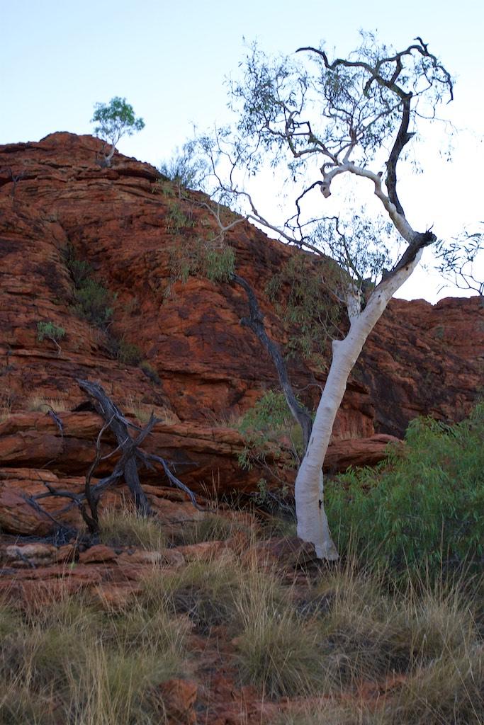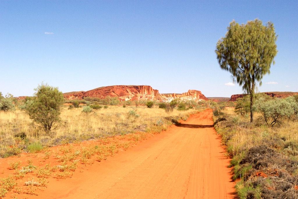 The next morning we did the Mereenie loop over unsealed road and this is where our 4WD came handy. It was a fantastic experience through a vast countryside of read earth, populated with some green plants (well actually there were more plants than we expected) and numerous fantastic viewpoints. Wow! It was for sure one of the more adventures rides so far. We continued past the west McDonald Range and St Hellen’s gorge before we arrived in Alice Springs late afternoon. In the evening we found a fantastic restaurant in Alice where we treated ourselves with a grill plate of lamb, kangaroo, camel steaks, and crocodile, accompanied by a fantastic Shiraz. Yummy.