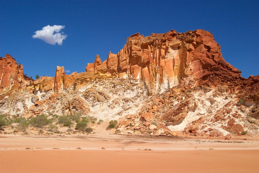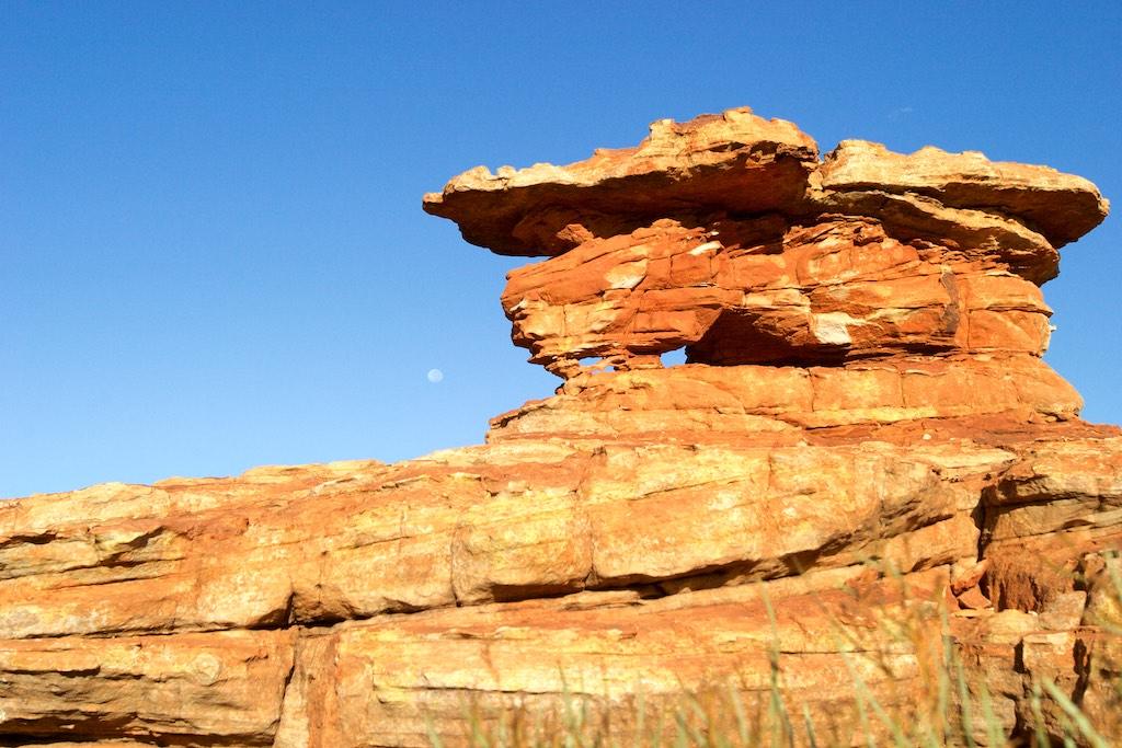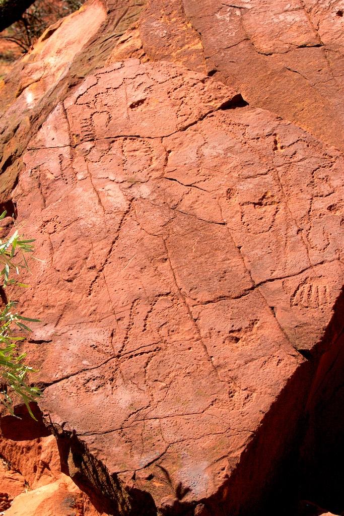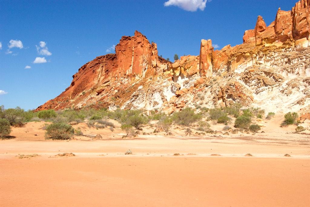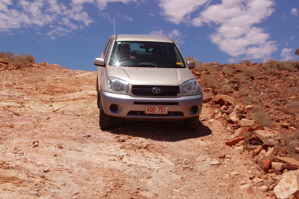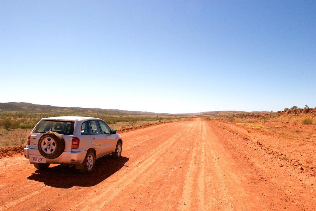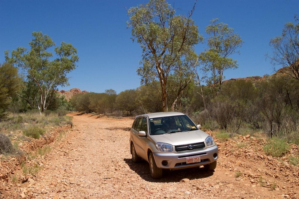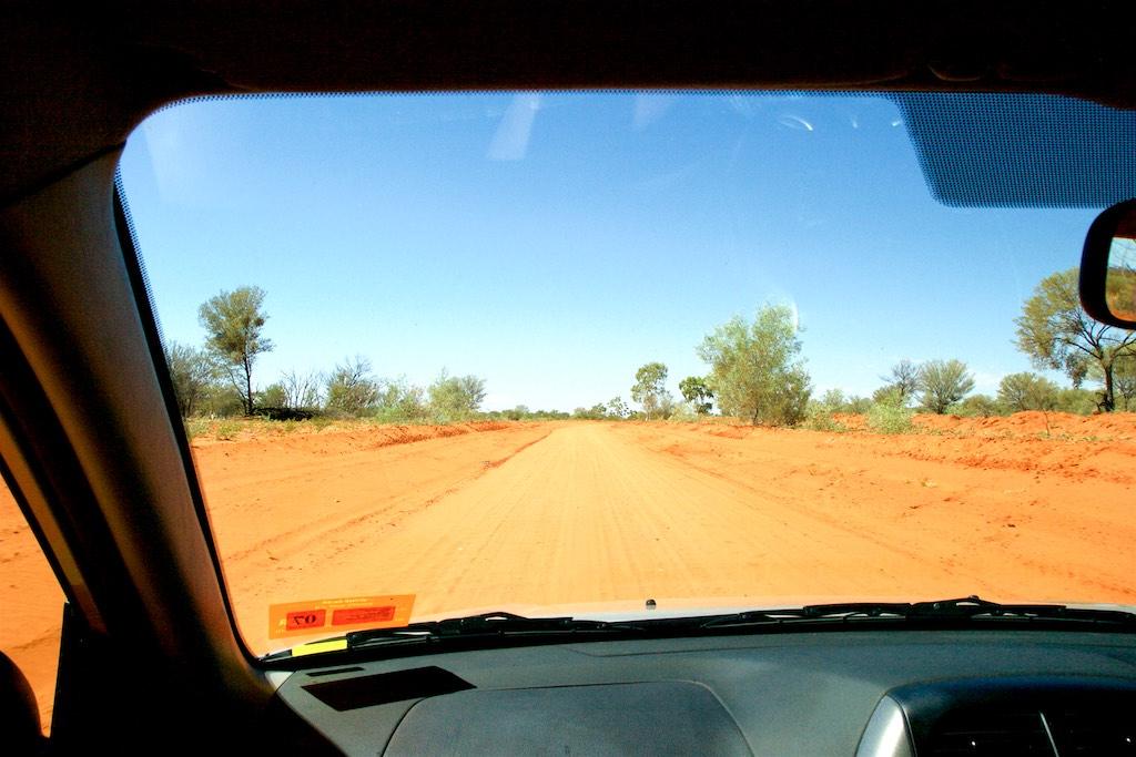On our last day with the 4WD we went off-road again to visit some rock carvings and chambers pillar, well, that was the idea anyway. I’m not exaggerating when I tell you the road was sometimes ehh, difficult to see and in extremely poor condition. We passed sand dunes, very rocky areas and had a lot of fun keeping our car under control. At times one of us was outside the car guiding it past difficult areas. We had already driven about 200km south when we came to a point where we were advised to radio ahead to check whether there was oncoming traffic or not. Also there was a warning for high and unstable sand dunes. This was the point where we decided to return, as we did not feel comfortable at all finishing the part of the journey. We realized the outback conquered us but then better safe than sorry…. Fortunately it was not only the destination but also the trip itself, which was breathtaking and a lot of fun so we did not feel we had done all the effort for nothing.
