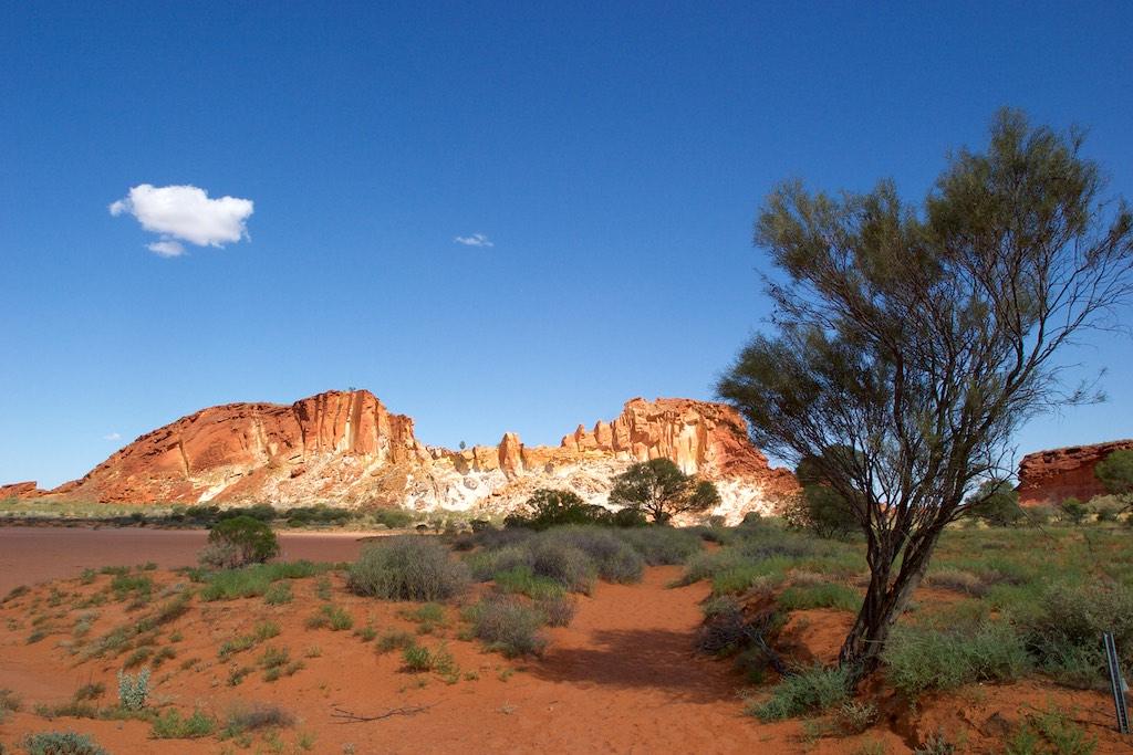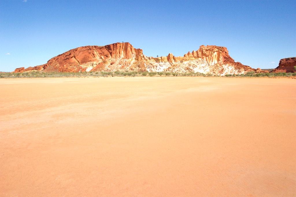 On the way back to Alice we did a detour and visited Rainbow Valley, which normally is mirrored in the lake in front of it. Not this time however as the lake was completely dried out!!! Still we admired the absolutely spectacular sight… The different colors were to say at least out of this world…