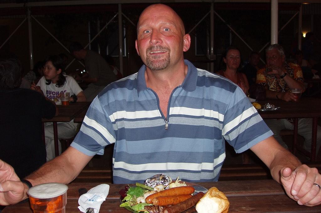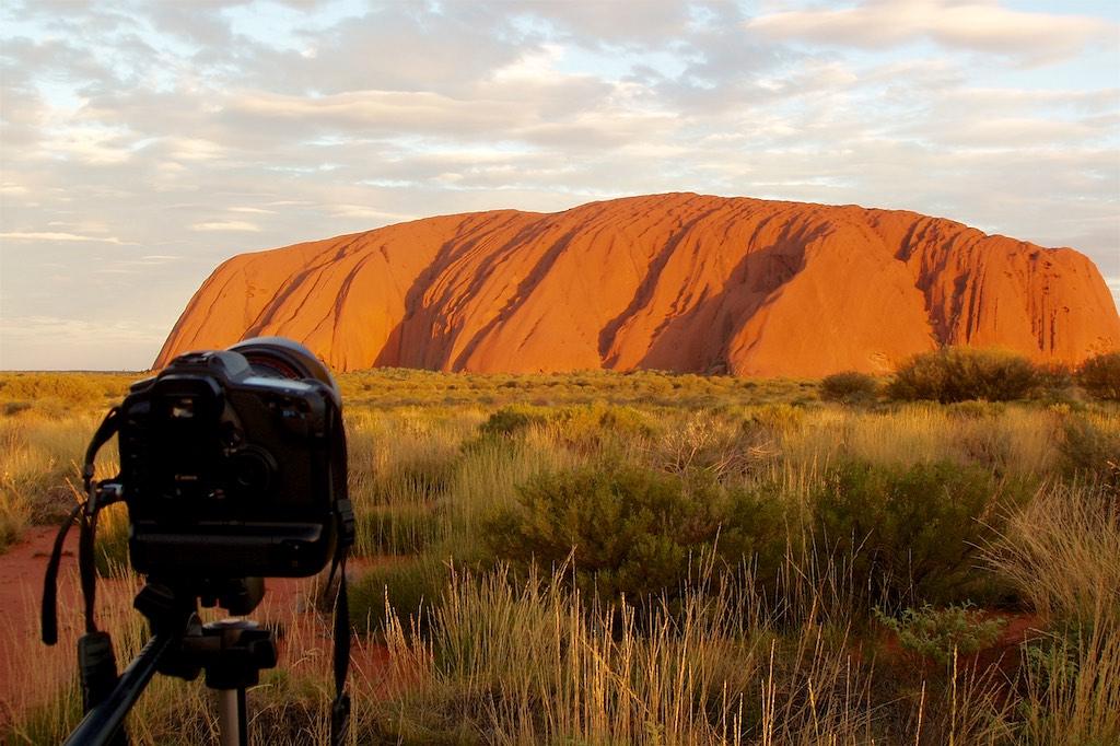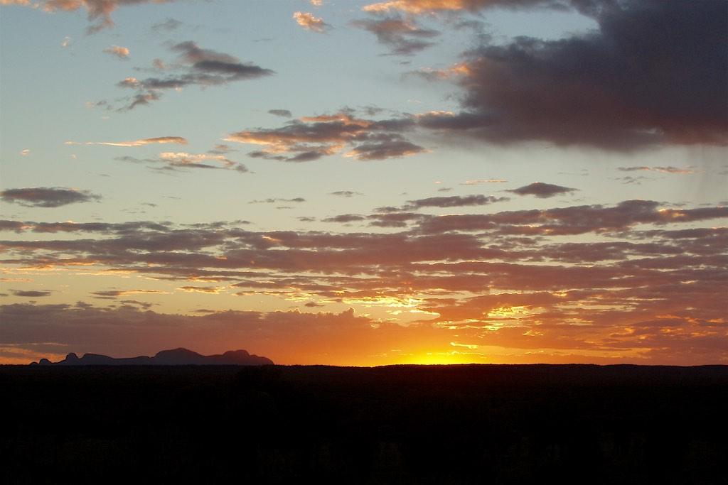 It was the 14th of February, Valentines Day, and the both of us had been looking forward for months for this special evening to come. We had booked two places on the Sound of Silence, which unfortunately turned out to be a complete disaster. The so-called ‘romantic dinner in the outback’ while zipping champagne and enjoying the sunset at Uluru was the biggest tourist trap we’ve ever been in…. going with 5 busloads to a ‘romantic’ dinner is not our idea of fun. It was conveniently forgotten to mention that the technical facilities are located between the dinner site and Uluru. Also the quality of the food was abysmal. Not the ‘gourmet BBQ’ as promised in the advertisement but a very mediocre buffet instead. But no more words on that, I have complained enough and would almost forget about the spectacular sunset we witnessed in the middle of this rip off…