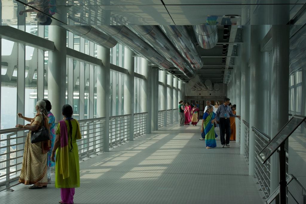 Before we realized it was our turn to go up to the flyover bridge which was located at the 41st floor. First we saw a really interesting documentary on how the towers were built and then we took the high speed elevator to the 41st floor. We only were allowed 10 minutes on the bridge, far to short, so we made sure we enjoyed every moment of it. What a view!