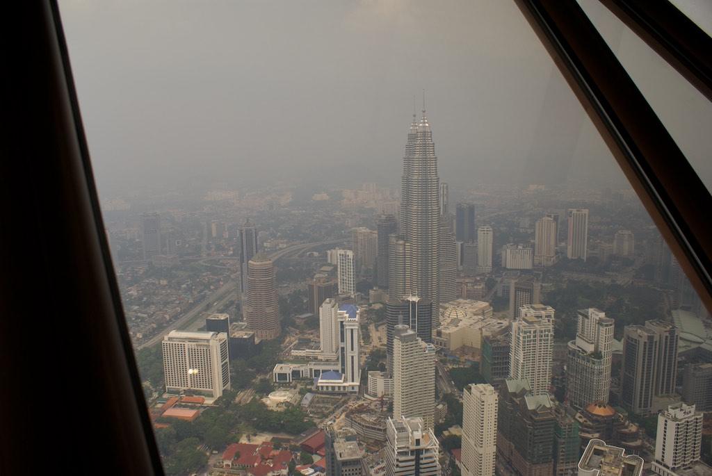 Once back with our feet on ground floor we took a taxi to another ‘highlight’ in Kuala Lumpur, the KL-tower where we had lunch in a rotating restaurant. Whilst enjoying some nice food we enjoyed the skyline of Kuala Lumpur. It was so nice we almost forgot to eat….