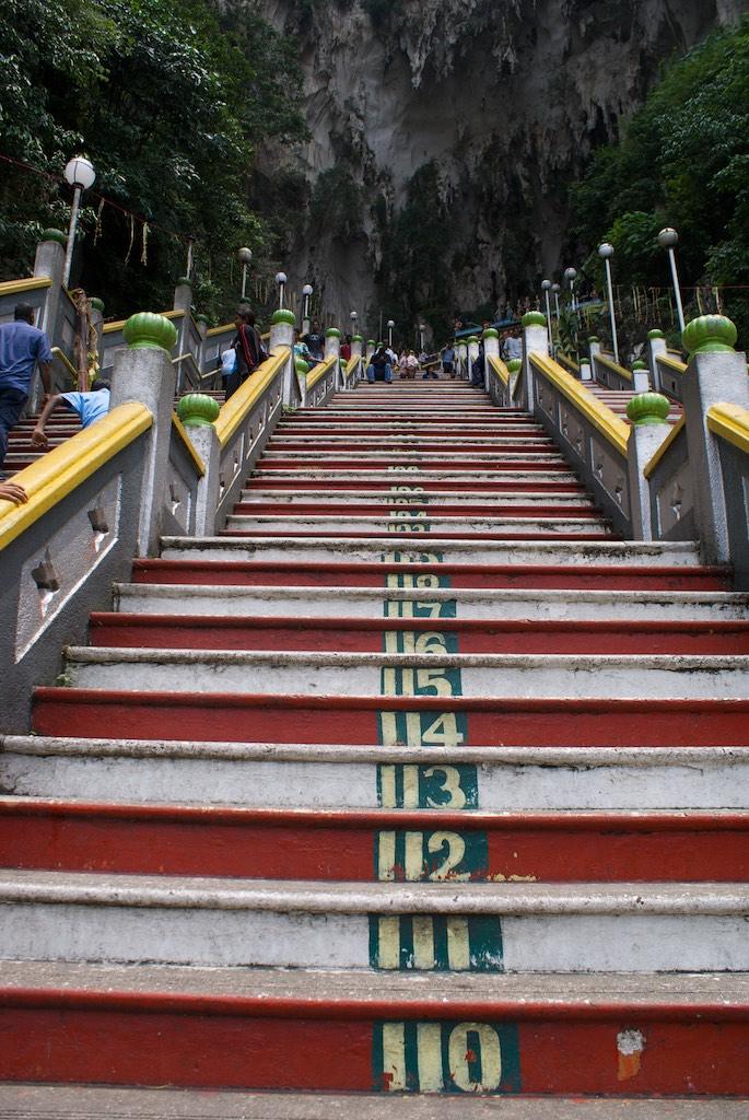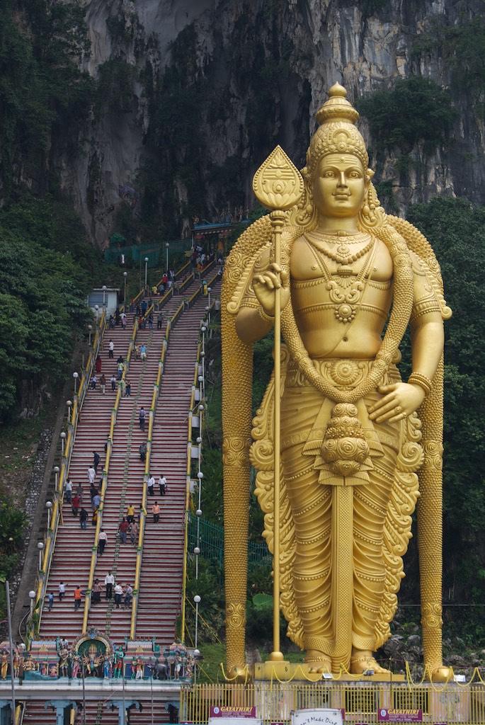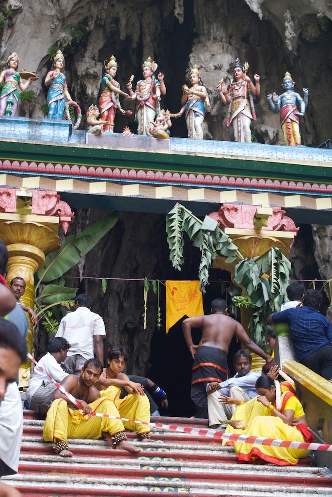 The next morning we took the bus to the Batu Caves, just outside KL. We strolled around a bot before we started our ascend on the stairs in front of the cave, 272 steppes to go. It was a long ascend but there was enough to see, colorful people, monkeys begging for food, so we reached the entrance before we realized it. The Batu Caves house some very sacred Hindu temples so there are always ceremonies going on. We were lucky as we ended up in the middle of a filmset, a great experience.