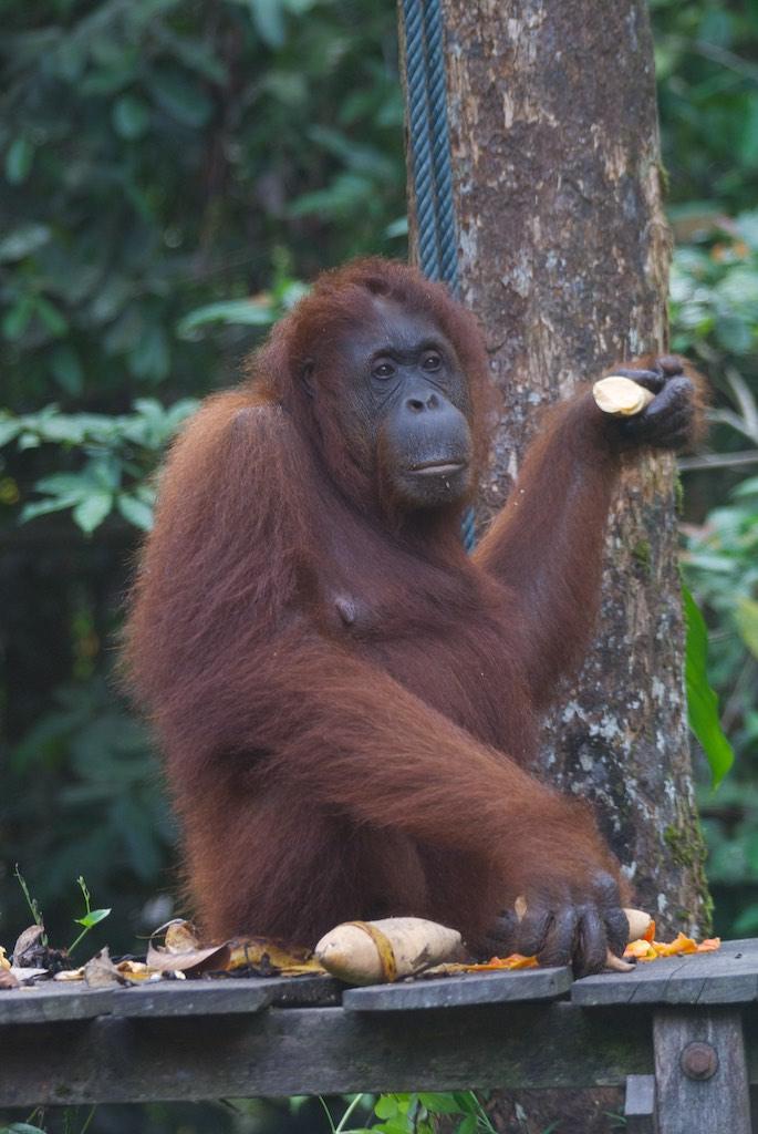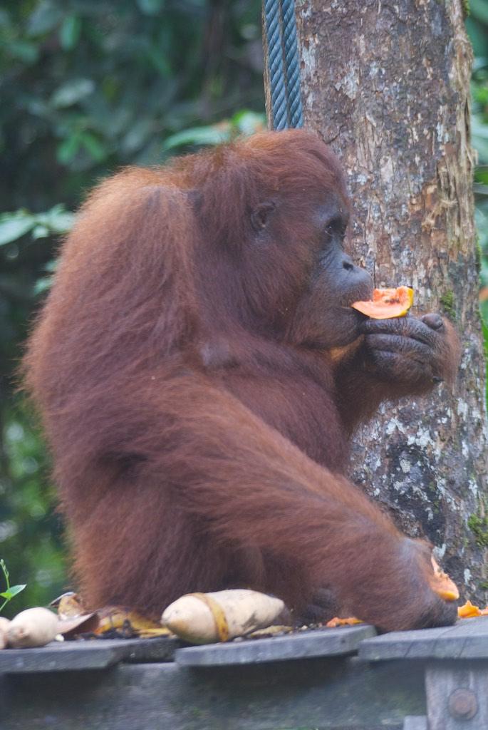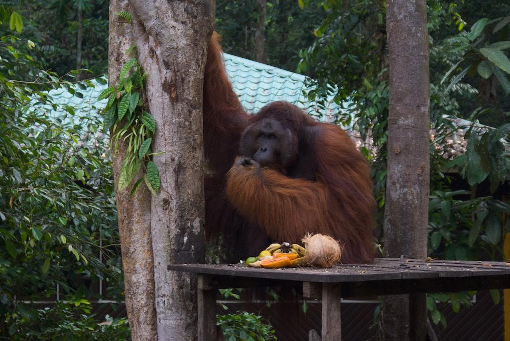 The first day in Kuching we arranged a trip to Semenggoh, the Orang Otan rehabilitation center just 60 km away. The trip was great and we arrived just in time for the morning feeding session. Orang Utans, stubborn as they are this time decided not to show up at the feeding platform in the forest but came much closer to the park entrance. That was a hike for nothing…. Well, luckily we saw 5 Orang Utans, a mature female, mother and child (which were so funny, the mother assisted the child grabbing food from the platform and then ate together higher up in the tree). Also we were very lucky to see a mature male, which does not show up at the camp very often. All after all a very good trip.
