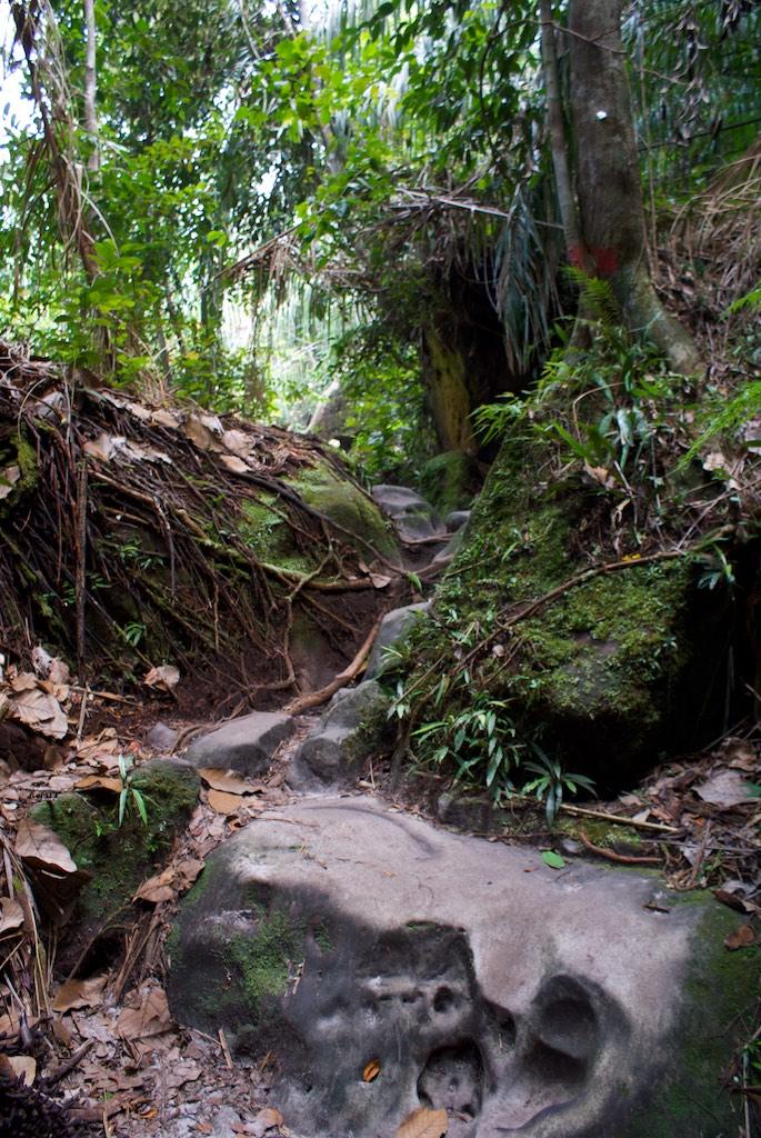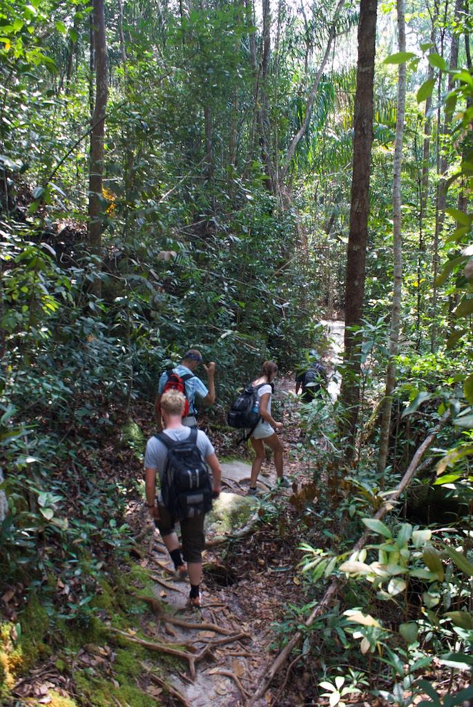 Tuesday morning, 6.00, wakeup call… We took out time to pack for the day and enjoyed a lush breakfast. Had some problems with ‘Borneo belly’ but fortunately that settled soon. At 8.00 we were picked up by a minivan and together with a Danish couple living in Beijing were brought to the entrance of the Bako National park. From there it was a 45-minute boat ride to the park HQ. In the river mouth we saw a saltwater crocodile, just over 1 meter long but with small sharp teeth, as he was proudly showing. Nasty little creature!!