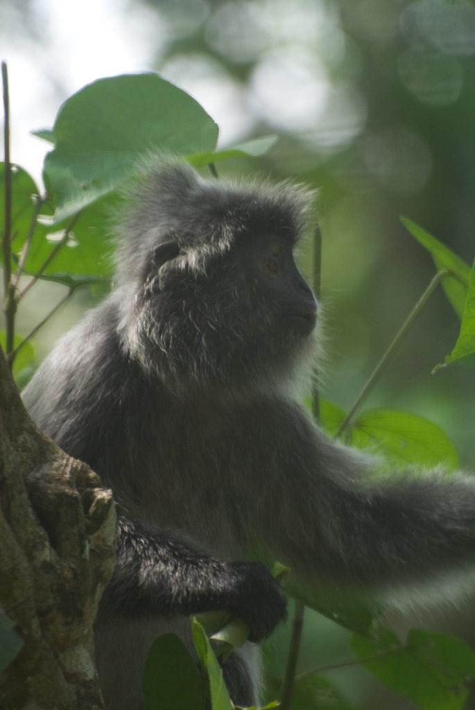 However, the boat arrived to pick us up and bring us back to park HQ. Due the low tide we had to wade through the water to reach the boat but that was all part of the experience. At park HQ we had a simple but lovely lunch after which we took off for our afternoon hike. This was just a short one but we saw some silver leaf monkeys and a small, bright green colored and lethal snake. One bite could easily kill an adult so I was very happy to have a strong zoom lens with me so there was no need to come close to this green little devil. Mid afternoon we the boat back to the park entrance. This was a very choppy but fun experience. We were constantly jumping over the waves of the incoming tide, this to the joy of all of us.