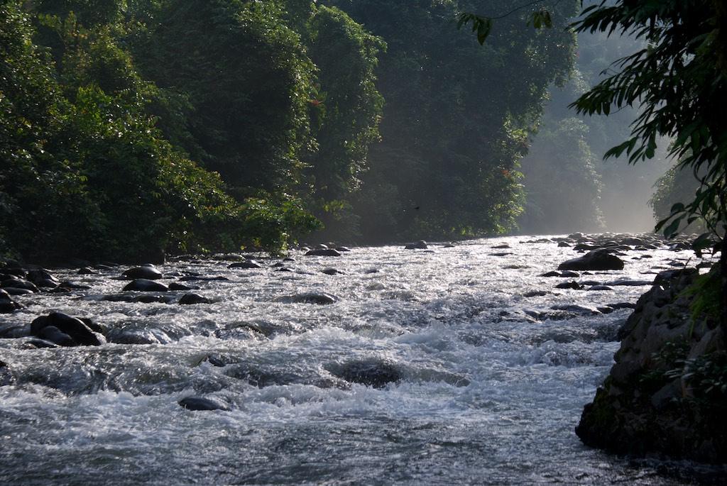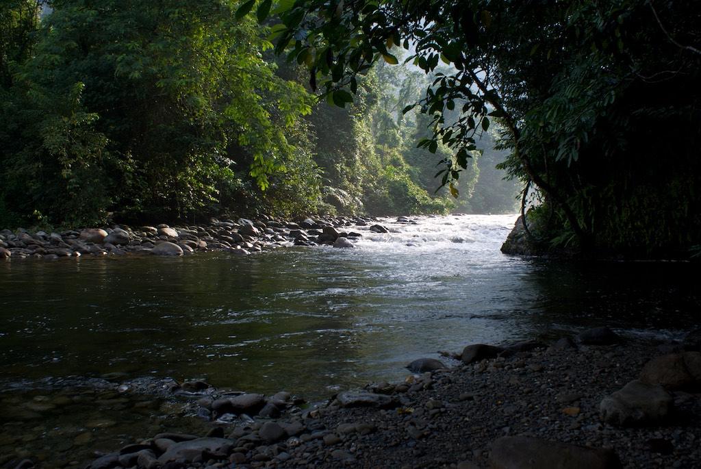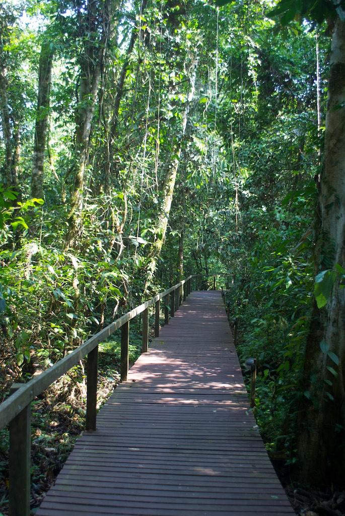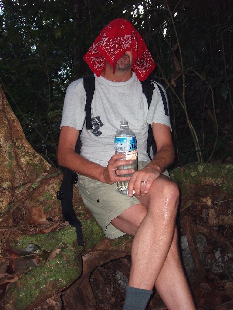Back in the boat we continued to the next destination, a small settlement at the riverbank. It was nice to see but we did not spent too much time as there was still a lot to be done. We moved further upstream and at some places the water was so low we had to get out and push the boat. Welcome to the jungle! About an hour later we stopped as we arrived at the start point of our hike. It was only an 8-kilometer walk through the jungle but it was very easy going. However we sometimes felt the kilometers were miles… 2 1/2 hours later we arrived at camp 5! Here we found basic but nice accommodation for two nights. 4 dormitories, a thin mattress, sheet and mosquito net, that was all we had to sleep, well, we have done worse and this was quite an experience to. Silvia cooked a lovely meal and briefed us on the walk next day. It was a very short walk, only 2.4 kilometer so where’s the problem, well, what about a 1100 meter climb to be done in 2.4 km… Aaarrgghh. We went to bed very early (7.30 pm) but it was not easy to fall asleep with all the snoring around. But finally it succeeded and we got the rest that we so hardly needed the next day!