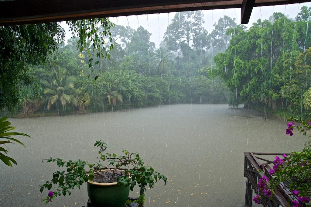 Now that was a different story from the Tune hotel last night, a nice all wooden spacious chalet for the two of us, surrounded by palms and overlooking a pond. It was a fantastic setting and both of us felt in seventh heaven again. Now talking about heaven… that decided to open whilst we were having lunch, it was an absolute cloudburst but after an hour suddenly, as quick as it started, the rain stopped. It was like somebody closed the valve.