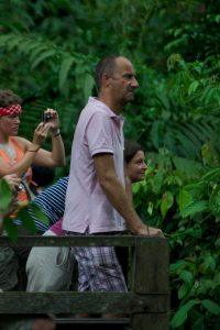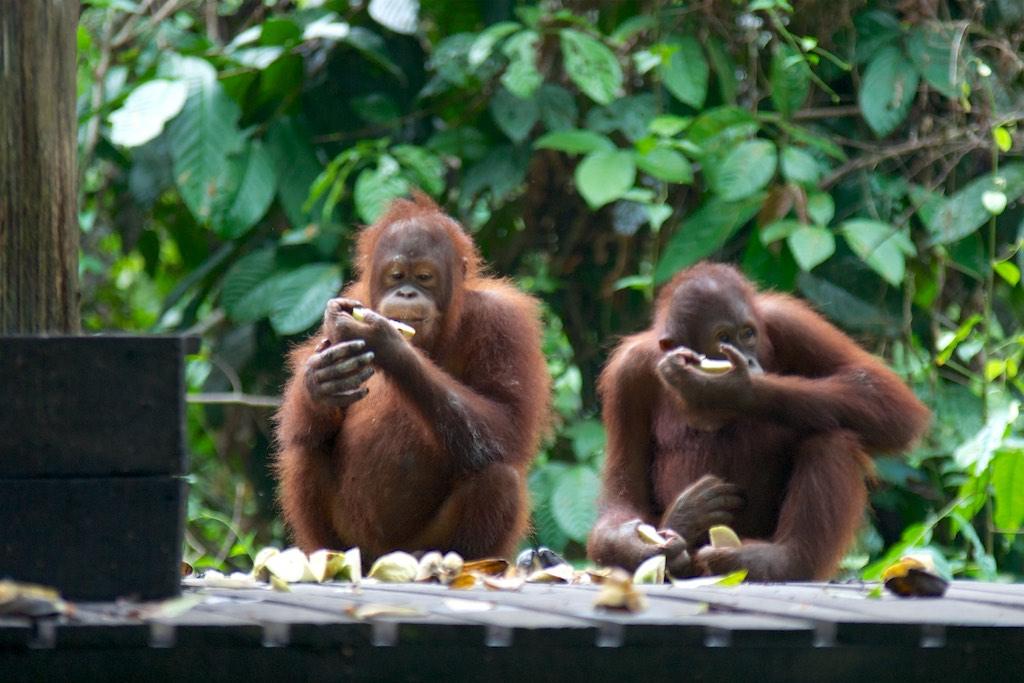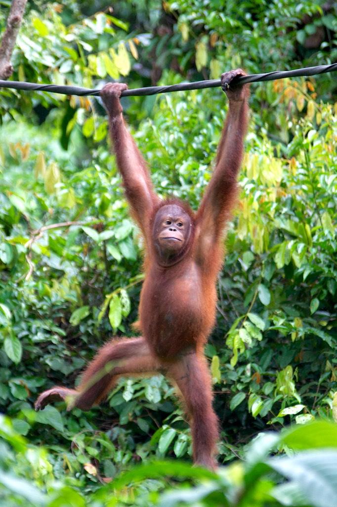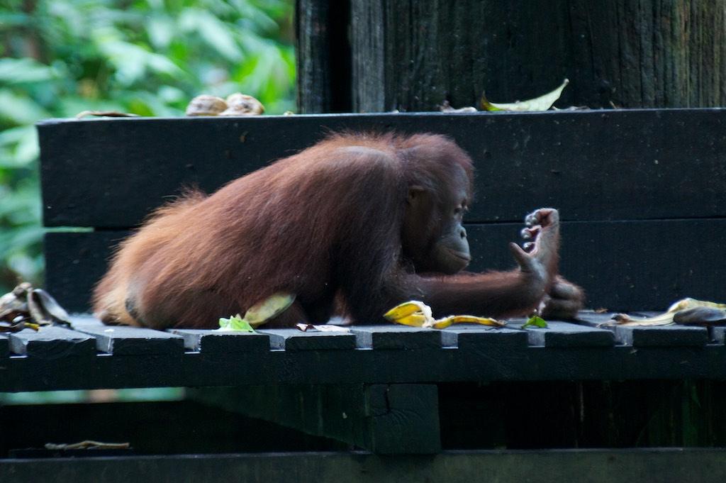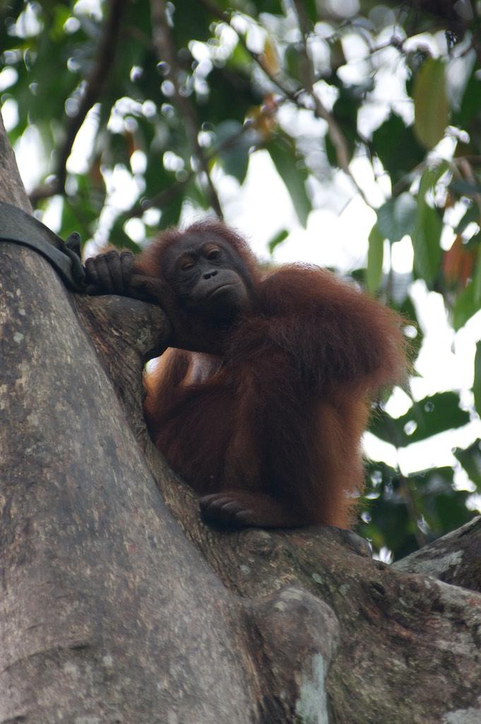 Not much later the sun was shining again and we went on a little stroll towards the orang otan Rehabilitation Center. This center, like it’s counterpart in Sarawak that we visited in 2007, focuses on re-educating orang utan’s that have been captured and kept as pets to get used to living in the wild again.
