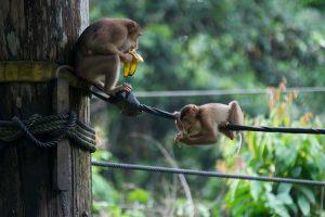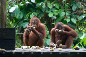 It was feeding time at 15:00 when a ranger brought a bucket of bananas and not much later the orang otans arrived. We were focused as soon as something started to move in the bushes and not much later a red hairy animal made it’s way to the platform where the bananas were served. The animals were hilarious, their movements, their characters and even their faces when another orang otan took a banana away. It was fun to watch. The orang otan’s were not the only ones interested in the bananas, so were a bunch of other monkeys who, once they had built up courage, approached the platform to steal some bananas. This led to funny moments when the orang otans disagreed on their fellow diners. To our liking it was over far to quick, fortunately we have another chance to see it once we return from Lankayan.