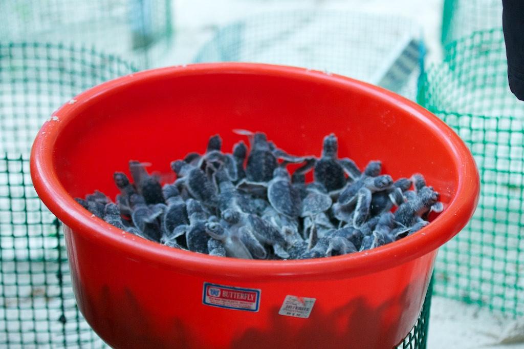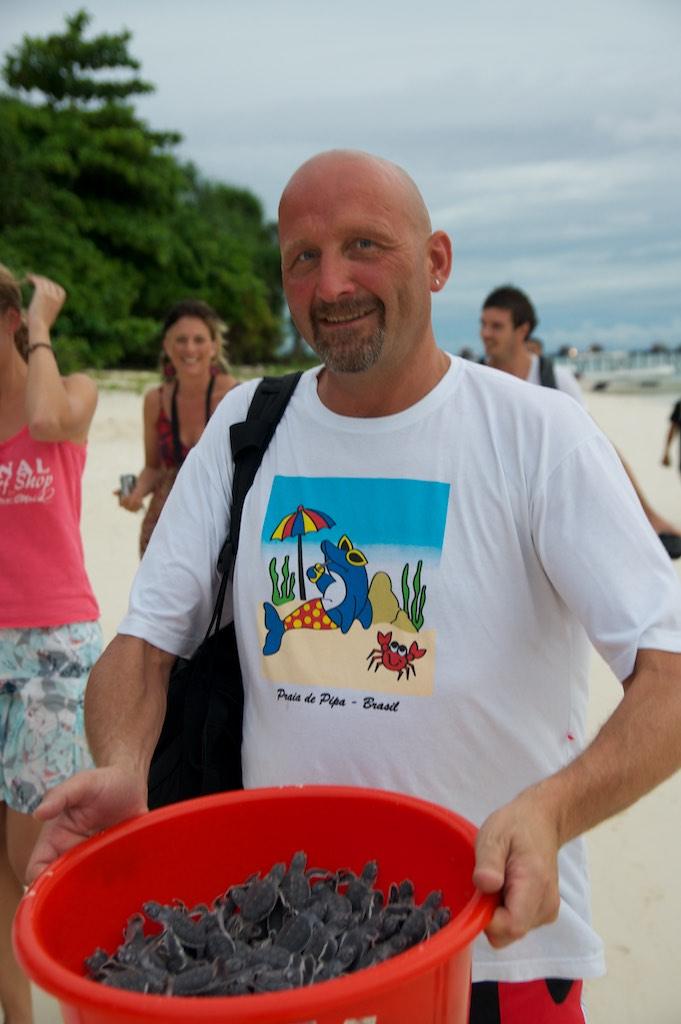 Back at the island I joined Paul who was working extremely hard…. on his tan. It was so relaxed I dozed away and did not wake up until the sun was setting and we were called to witness another baby turtle release. Although it was our second time it was still wonderful to see about 200 small baby turtles get off in the water on a way to an uncertain future.