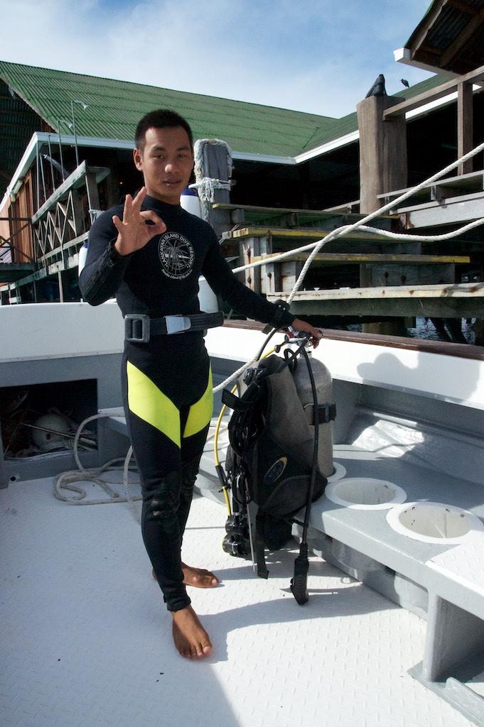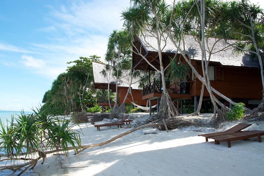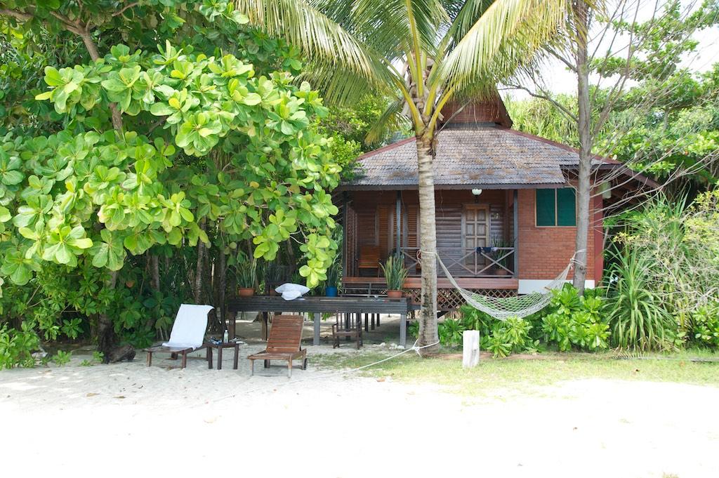 Our boat moored at the jetty from where we strolled to our home for the next couple of days. The look of it made us dribble, everything one can wish for. A beautiful white sandy beach, a couple of chalets, and trees. No more, no less. We kicked of our sandals and decided not to wear them for the next couple of days. We were briefed on the island’s daily routine of meals and the activities. Hmmm, two sorts, diving and a kayak trip around the island. Further each bungalow had a hammock and a piece of beach and that was about all that the island had to offer. Relax, and do absolutely nothing at all. Perfect I would say.
