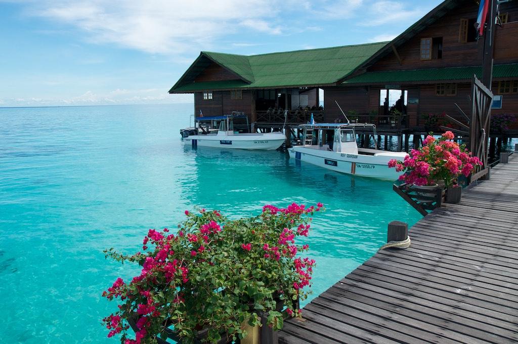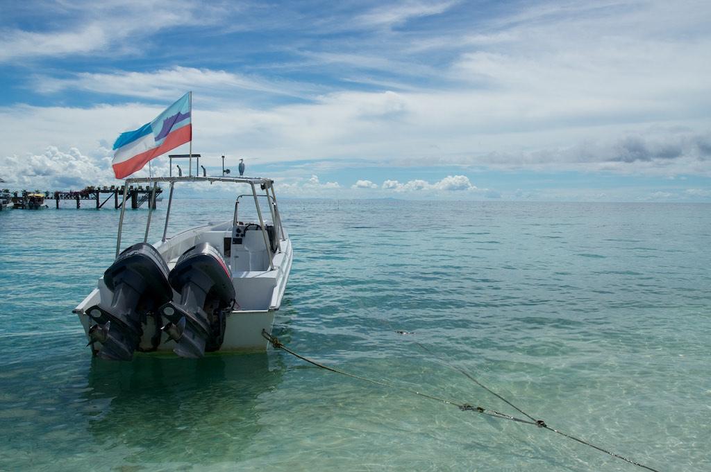 Woken up by the alarm again, but this time with a difference, we felt like we had a good night of sleep. After breakfast we were brought to the marina where a speedboat was waiting for us. It was loaded with 400 Horse Power, enough to jet us over the water with 46 miles an hour, not bad at all. We passed some small islands and some fishermen settlings on poles but after that there was only water to be seen. Water, water, and more water. The trip took us just over and hour and a half after which we could see Lankayan in the distance. The pictures we had seen on the Internet had not been misleading at all. It looked like a paradise in the middle of nowhere, absolutely perfect to spent a couple of days.