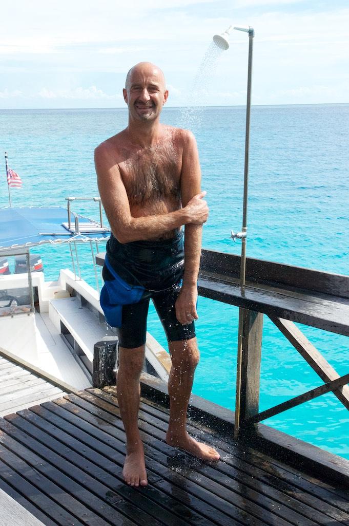 Paul had a slight headache after the first dive and decided to have a relaxing day whilst I opted to go for the 2nd and 3rd dive. Relaxing is the keyword for Lankayan. With no roads there is no sound to be enjoyed but the waves gently crushing on the beach. It is truly a paradise and it’ll be difficult to get used to the real world again. Tranquil, friendly, I could go on with superlatives but that would just be an understatement. We have not been wearing shoes for days now and the sand feels wonderful under our feet.