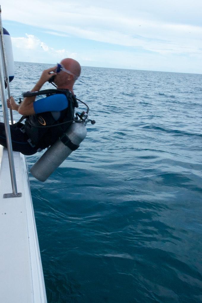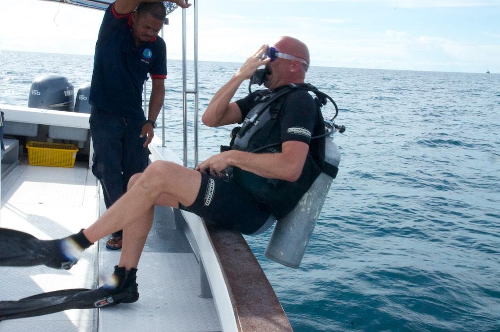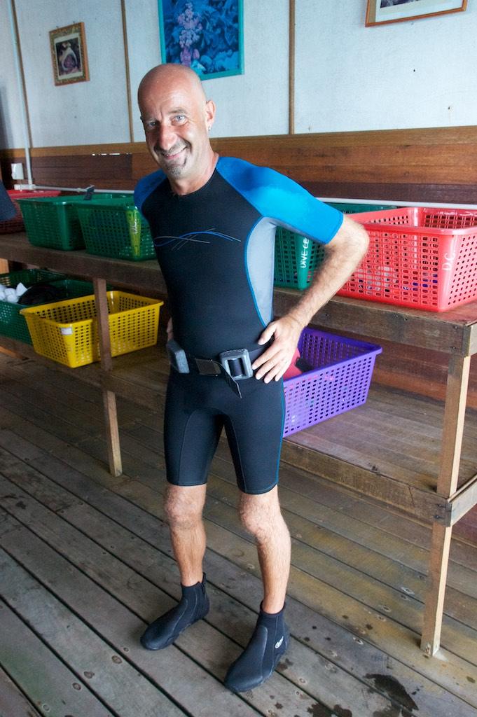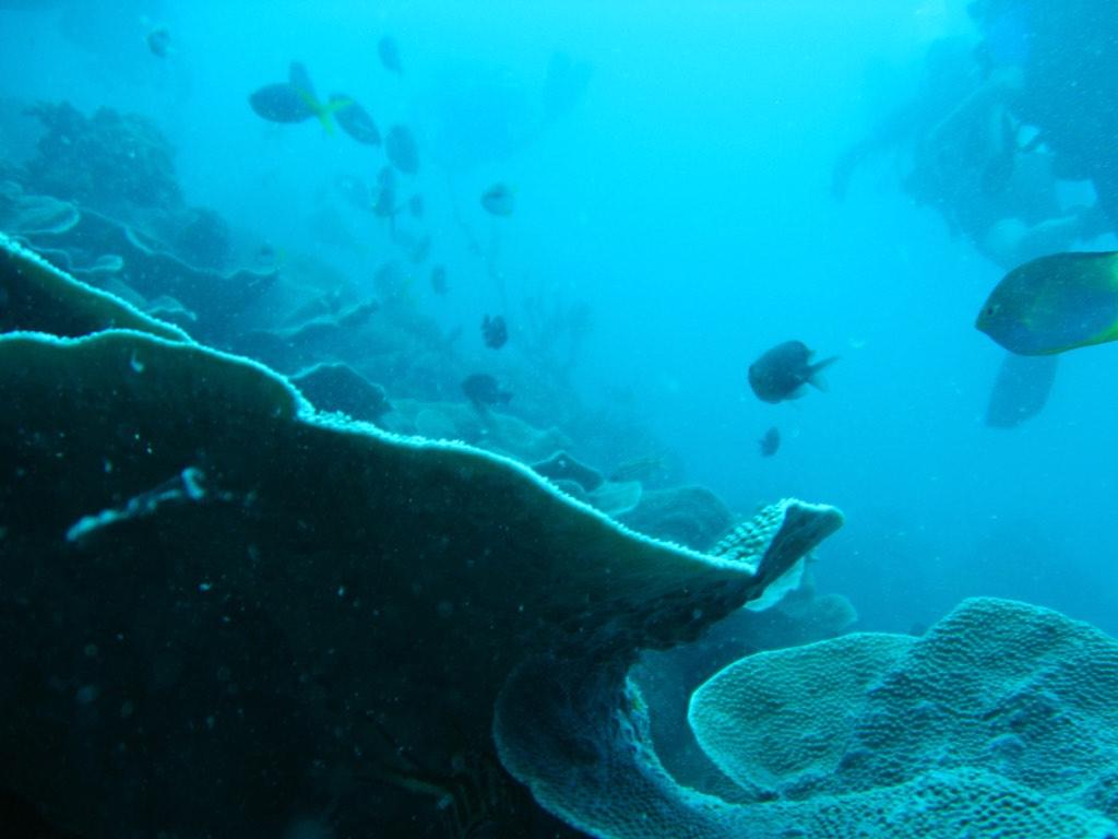 This time we went a bit further out to Bimbo rock. Not long after we descended we saw a blue spotted ray, fantastic, the real fun still had to come though. Once at the sandbank Paul spotted a large leopard shark resting in the sand. Not much later we saw a couple more graciously swimming just in front of us. It was magic. There was lots of coral and fish life, more colors than you can imagine. This was certainly a special dive. Far to quick for our liking we had to return to the rope, do our safety stop and head back to the island.
