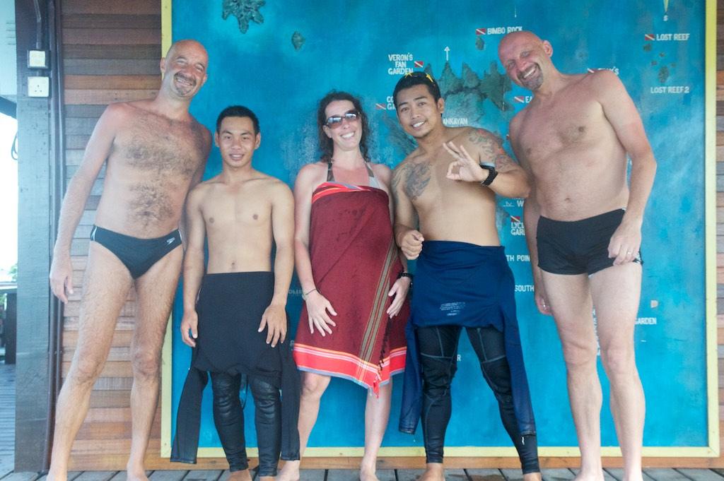 Our last evening in Lankayan turned out to be very special. We joined up with Sara, Cat and Rob for dinner after which the dive masters joined us for an evening of joy and music. Band, our diver master for most of the dives, was also a gifted guitar player and singer. The rest of the crew acted as background singers and we really had an absolutely wonderful evening of sing-alongs. Lots of stories from our underwater adventures came up, can’t remember an evening where we laughed this much. It was fantastic but around 22:00 it was time to settle the bill and return to our bungalow.